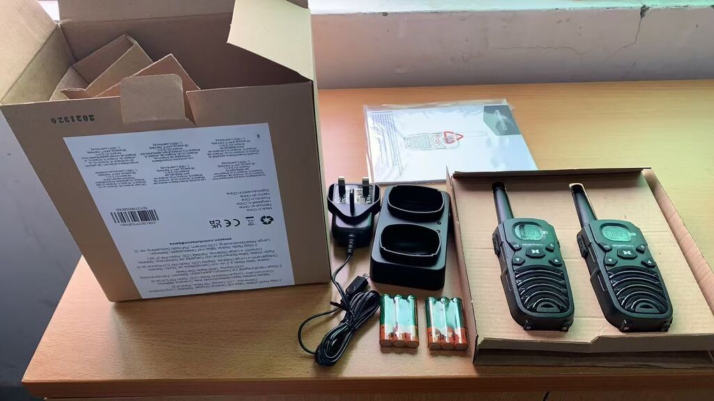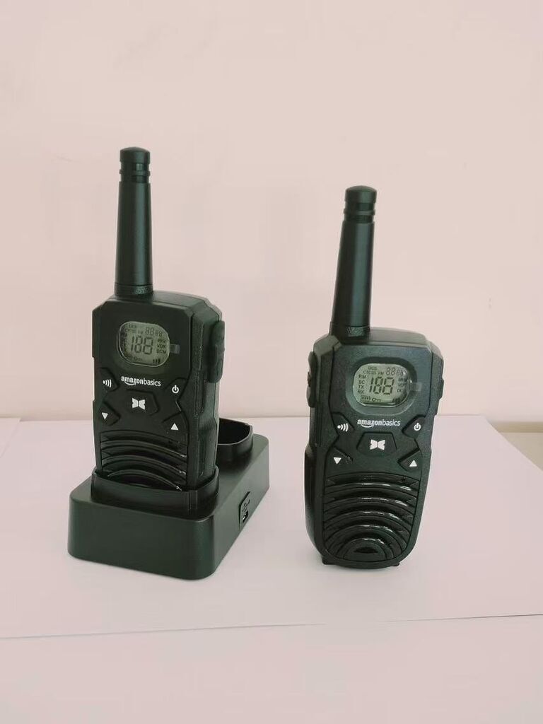 2c Bộ đàm 2 chiều Amazon Basics có bộ sạc để bàn, pin, kết nối đường dài, kèm pin sạc