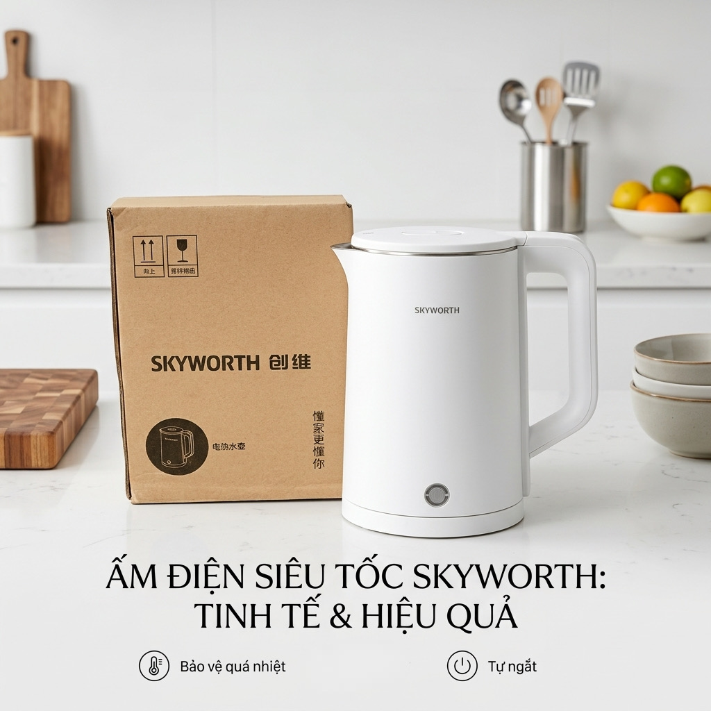 Ấm đun nước siêu tốc hãng SKYWORTH S139, dung tích 2L, ruột inox 304