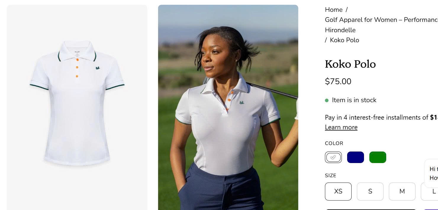 Tôn lên vẻ đẹp năng động và tinh tế cho nữ golfer với Koko Polo từ thương hiệu Hirondelle. Thiết kế hiện đại kết hợp chất liệu cao cấp giúp bạn tự tin trong từng cú swing và luôn thoải mái suốt ngày dài.