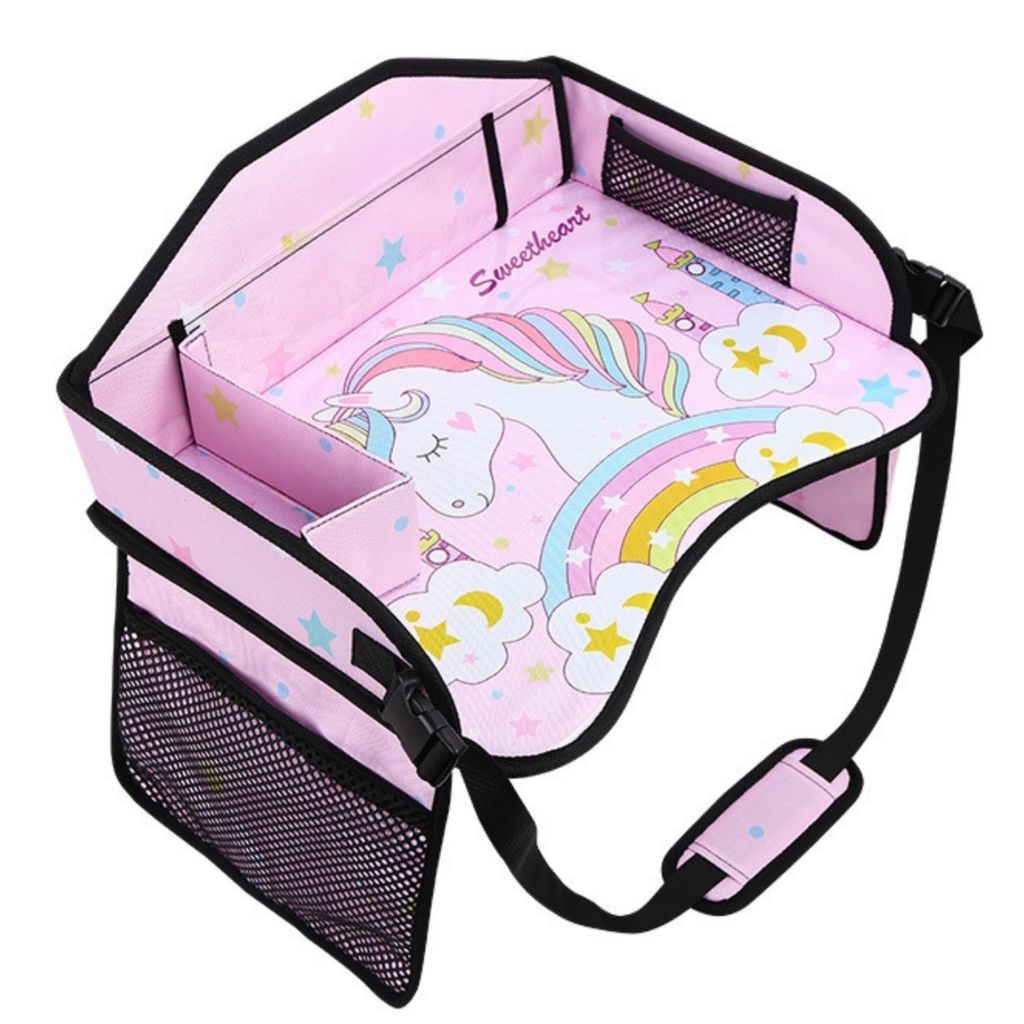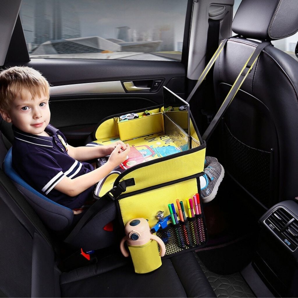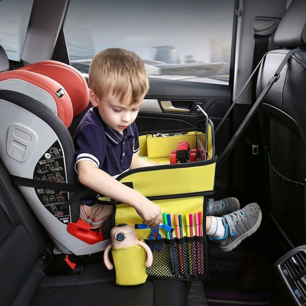 Bàn treo ô tô cho bé, khay đựng đồ chơi đi xe hơi, đi chơi, đi dã ngoại chống nước, kèm ngăn đựng cốc cho trẻ em