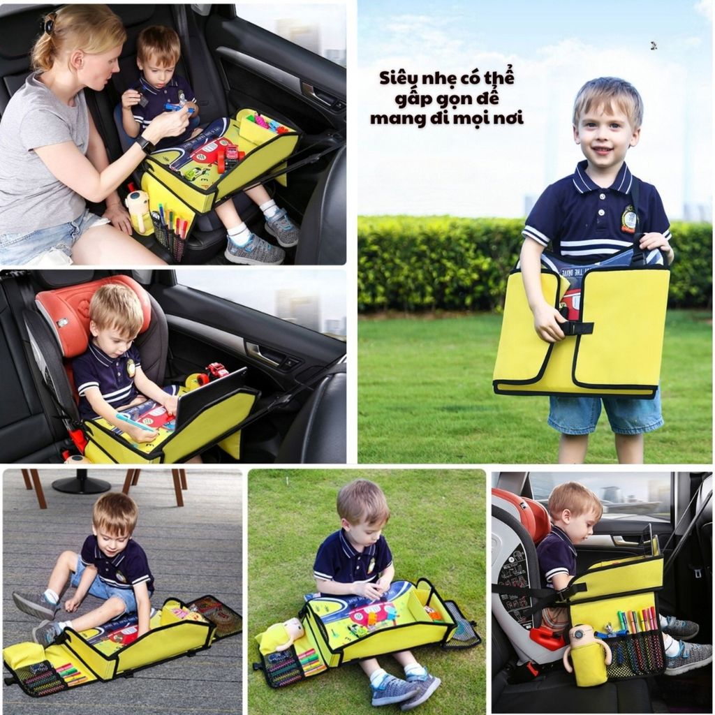 Bàn treo ô tô cho bé HieuMinhCar, khay đựng đồ chơi đi xe hơi, đi chơi, đi dã ngoại chống nước
