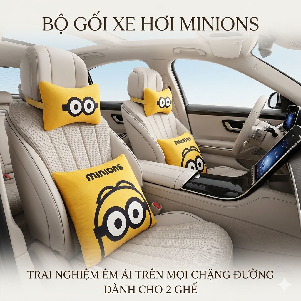 Tên sản phẩm: Bộ gối tựa đầu + tựa lưng ô tô Minions