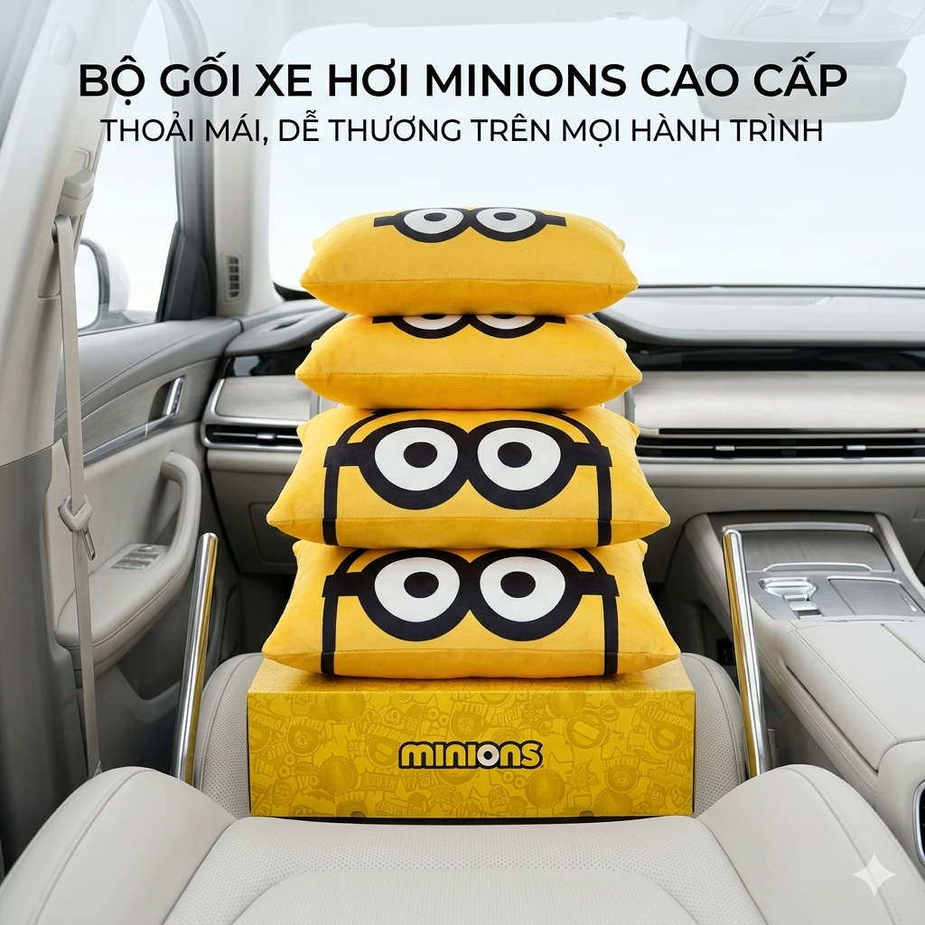 Bộ 2 gối tựa đầu + 2 gối tựa lưng ô tô Minions ( chính hãng )