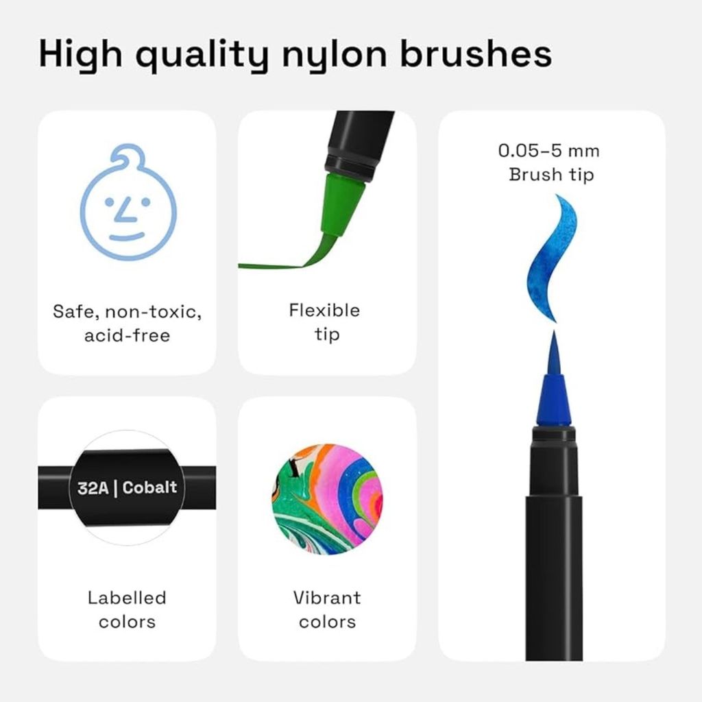 • Loại ngòi: Ngòi lông (Brush tip) bằng sợi Nylon cao cấp, mềm mại và linh hoạt.