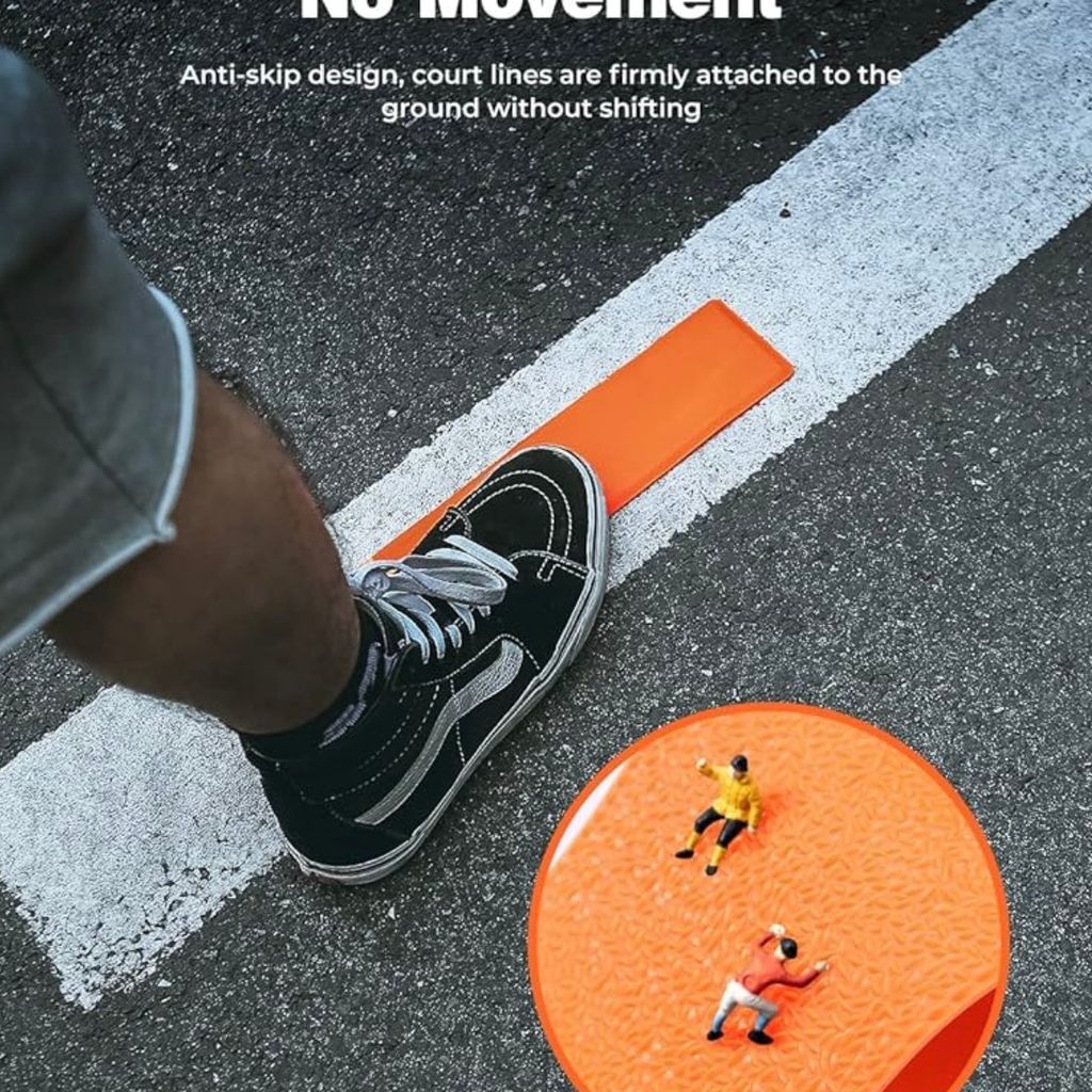 • 🚫 Chống trượt tuyệt đối: Thiết kế mặt dưới có độ bám cao, giúp miếng dán bám chặt vào mặt đường nhựa, sân bê tông hay sàn gỗ mà không bị xê dịch khi người chơi dẫm lên.