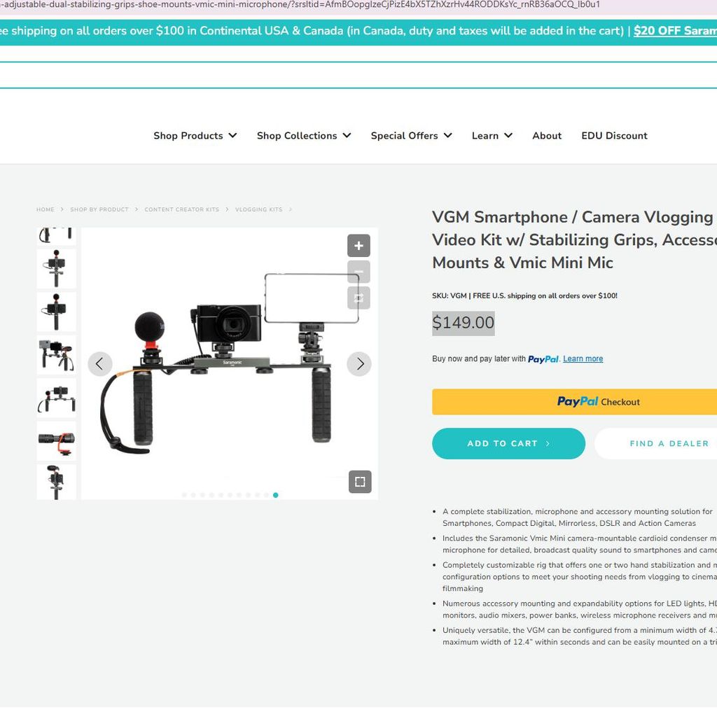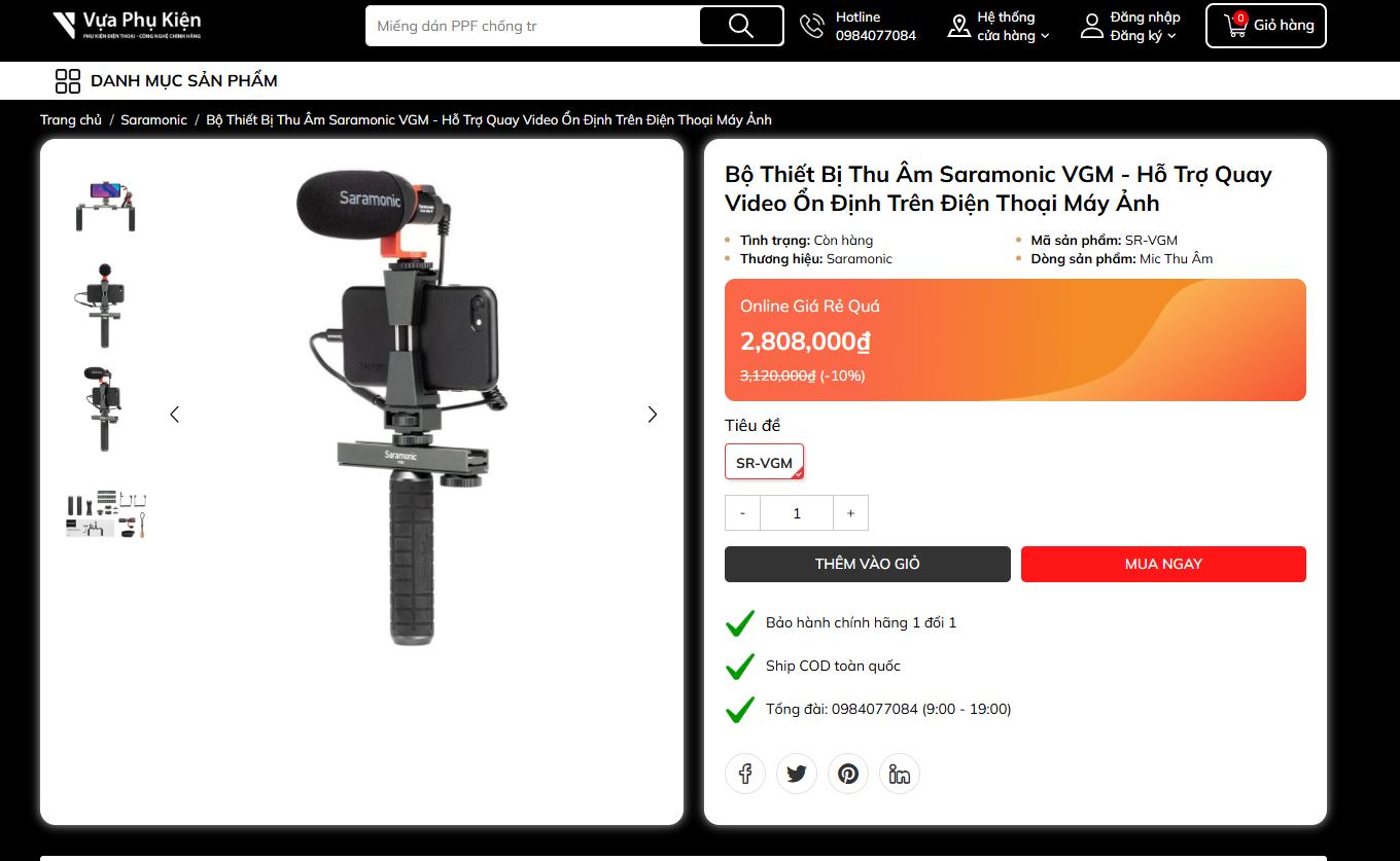 Đây là bộ thiết bị hỗ trợ quay video và ghi âm chuyên nghiệp Saramonic VGM (hoặc SR-VGM). Đây là một giải pháp tất cả trong một dành cho các vlogger và nhà sáng tạo nội dung sử dụng điện thoại thông minh hoặc máy ảnh nhỏ gọn.