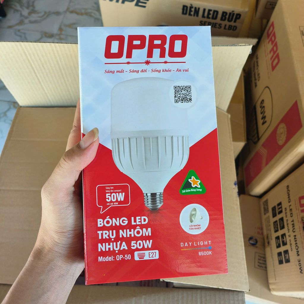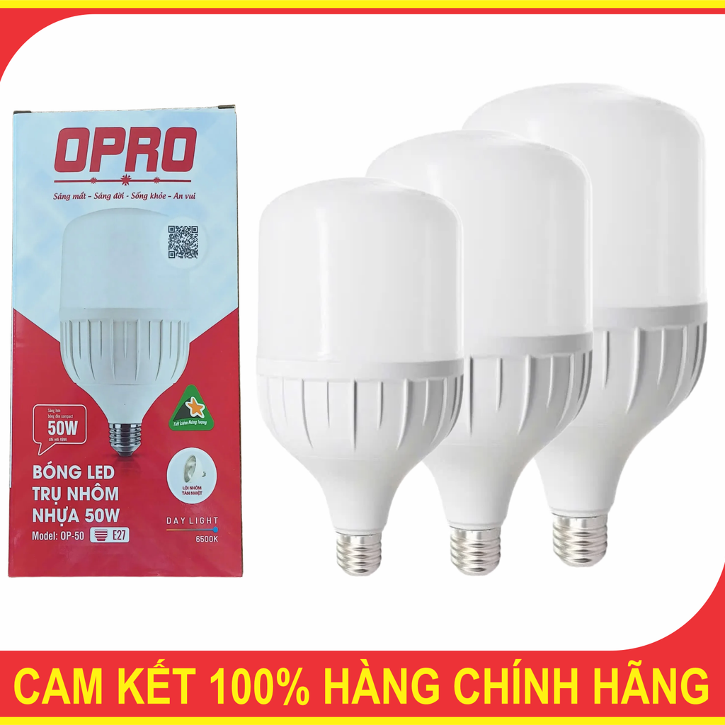 Bóng Điện, Bóng Led Trụ Nhôm Nhựa OPRO 20W,30W,40W,50W,60W - ( Bảo Hành 12 Tháng - Hỗ Trợ Xuất VAT )