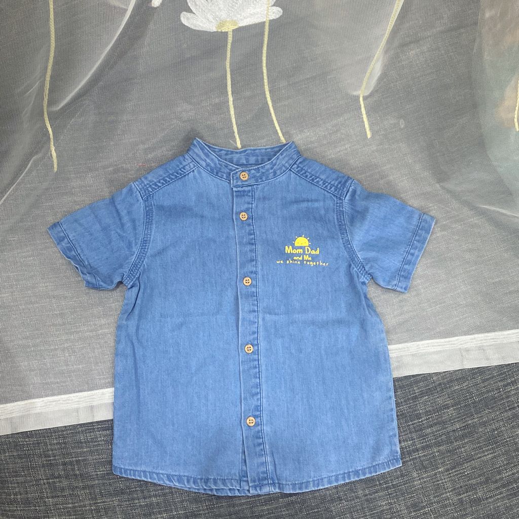 Áo sơ mi Kiabi Mom Dad dư xịn. Chất giả bò mềm mát . Cổ tròn dễ phối