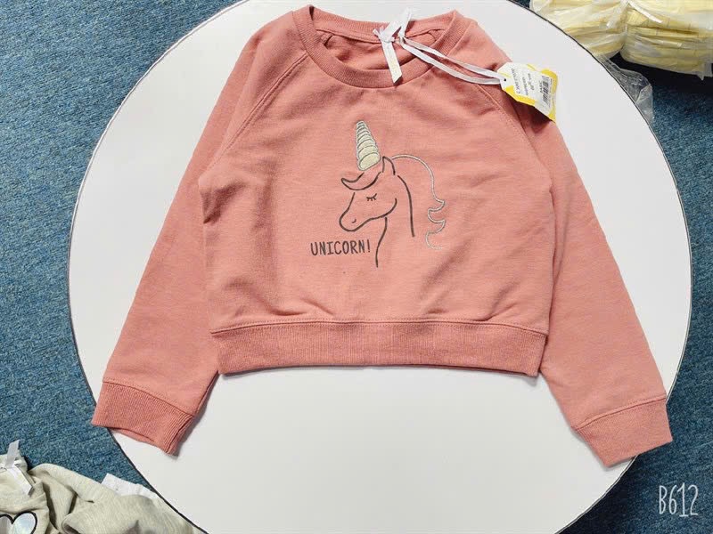 C3076 Áo nỉ bé gái dáng croptop size 6/12m-10/11y
