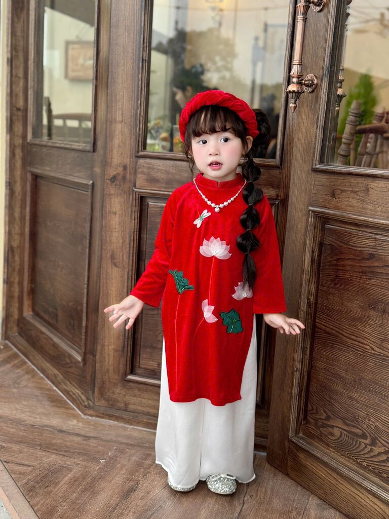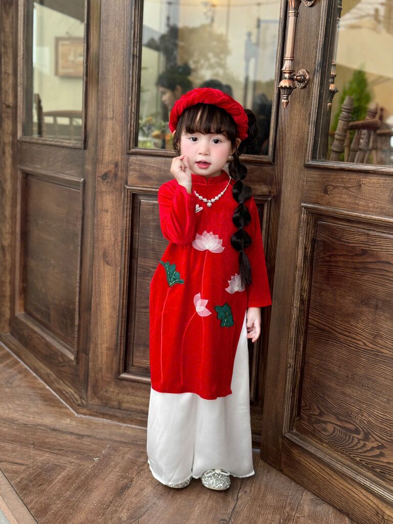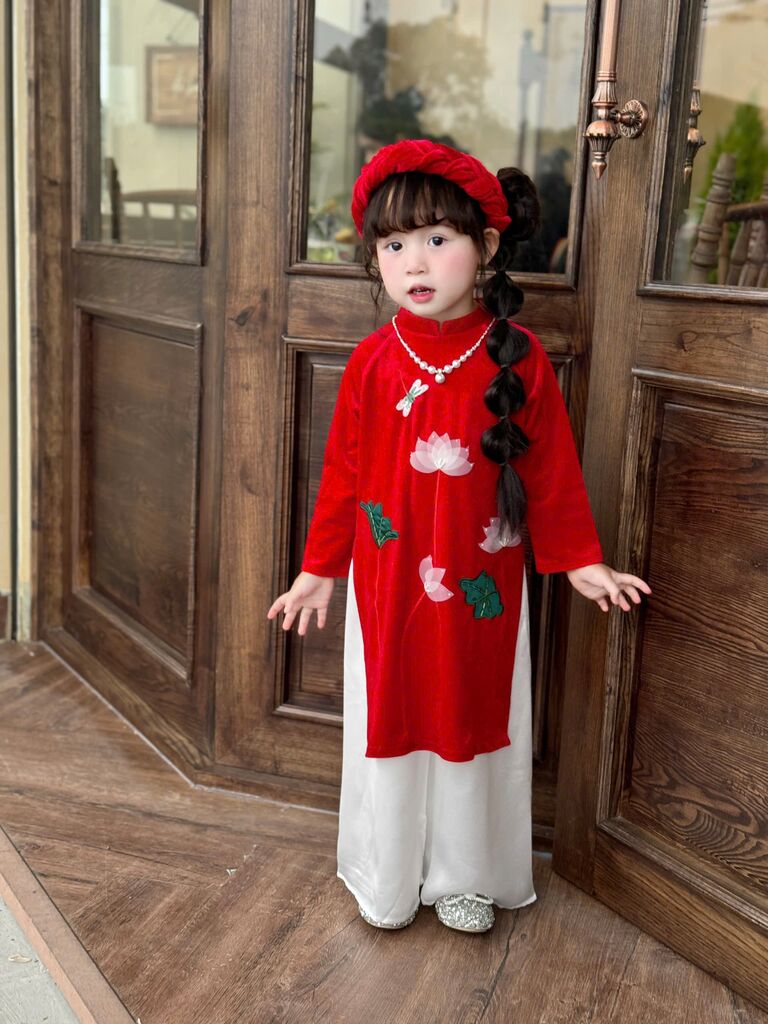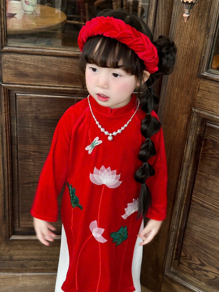C6068 Set áo dài(áo+quần+mấn) thêu tay sen size 1-10y(9-30kg)