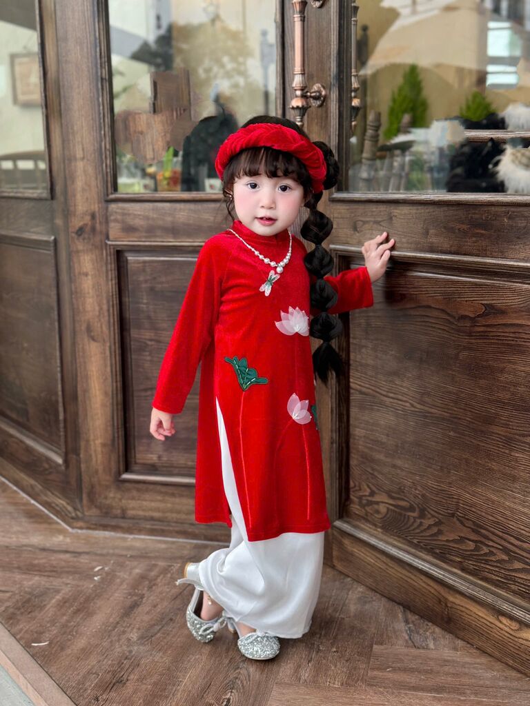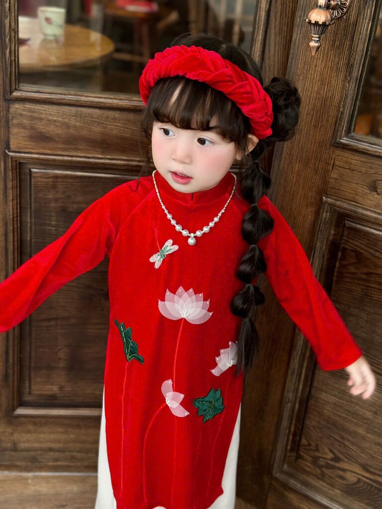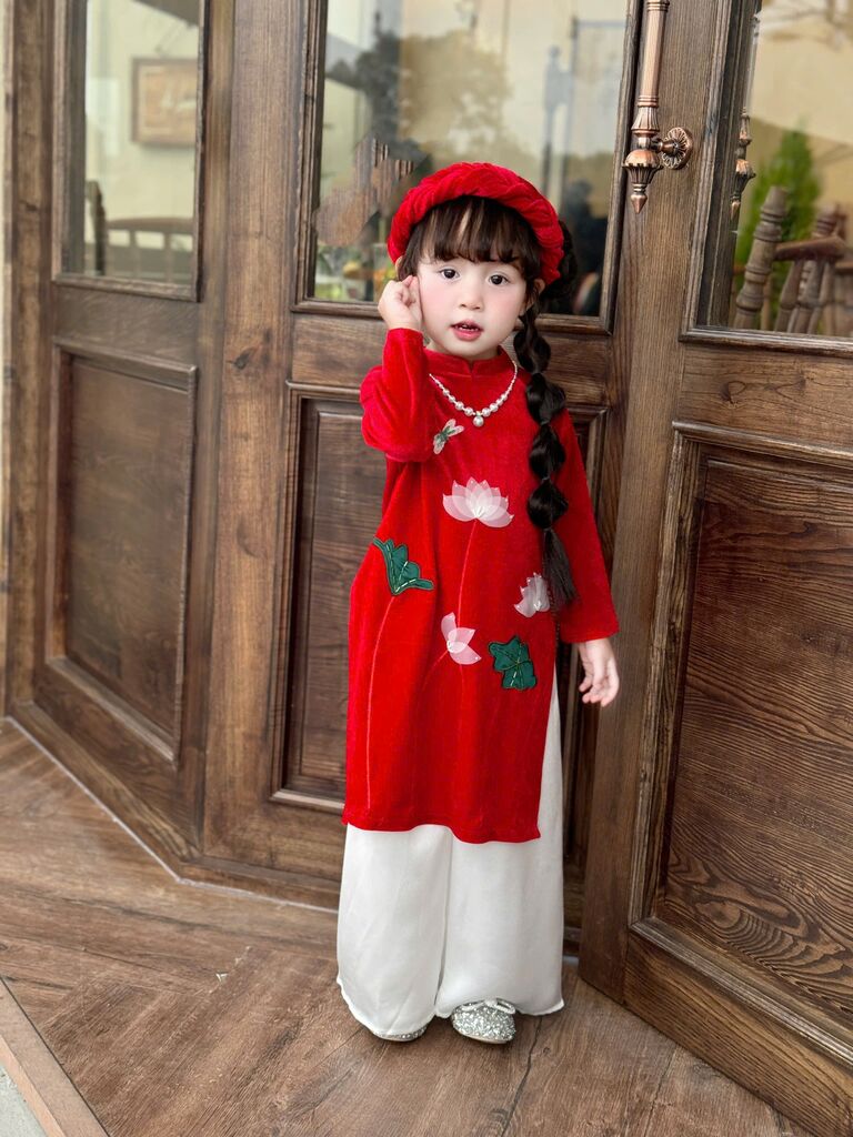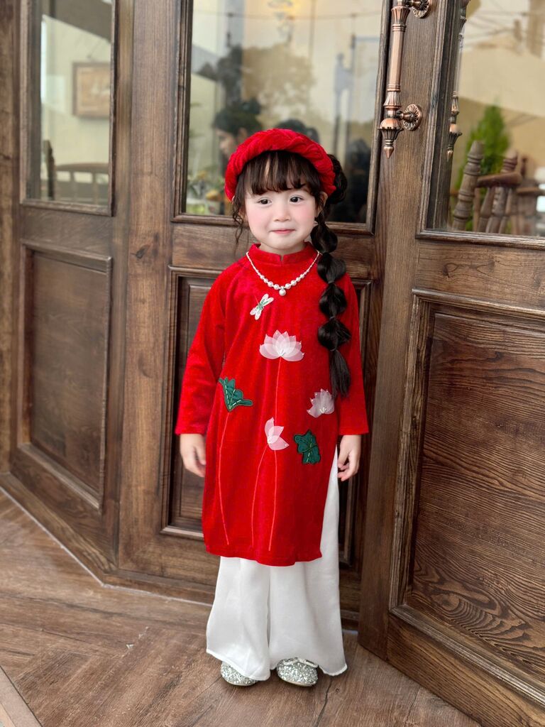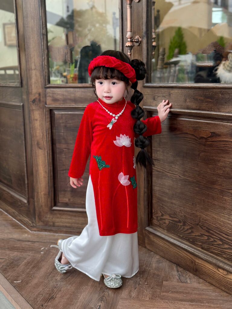 C6068 Set áo dài(áo+quần+mấn) thêu tay sen size 1-10y(9-30kg)