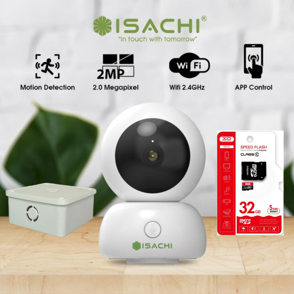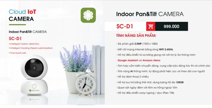 Combo IoT camera ISACHI SC-D1 (2MP) + Thẻ Nhớ 32GB + Chân Đế - BH 24 Tháng Full VAT