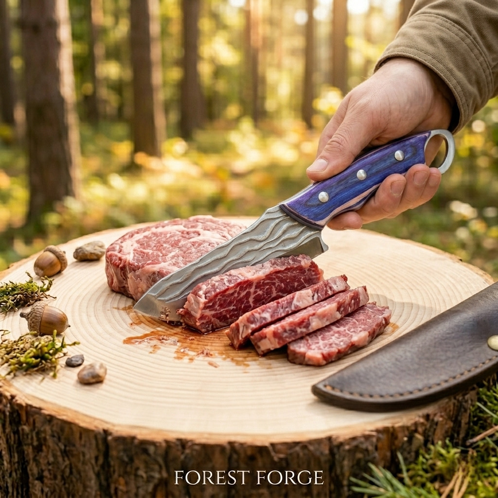 ✅ Họa tiết khắc laser độc đáo – Tạo hiệu ứng gợn sóng mạnh mẽ, đầy tính thẩm mỹ, giúp dao không chỉ sắc bén mà còn cực kỳ ấn tượng.