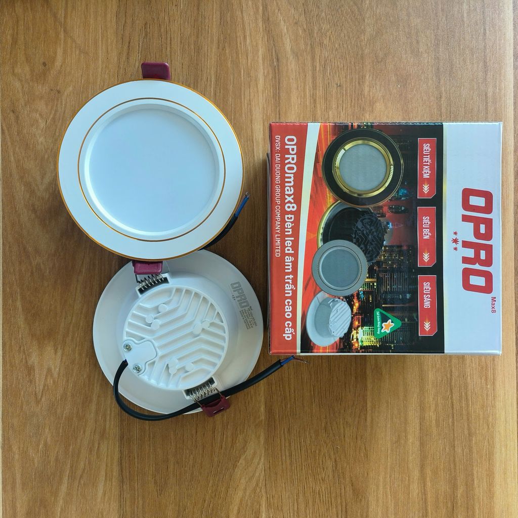 Đèn âm trần Viền Vàng, ánh sáng Trắng OPRO Max8 - Bảo hành 24 tháng