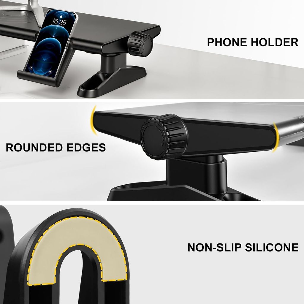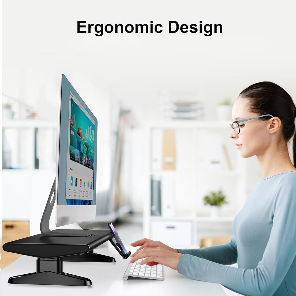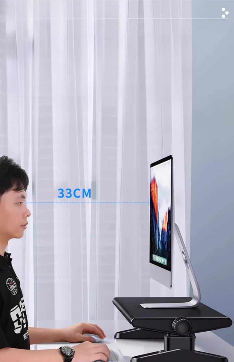 - Thiết kế công thái học: Đặt màn hình ngang tầm mắt, giảm đau mỏi cổ, bảo vệ sức khỏe cột sống.