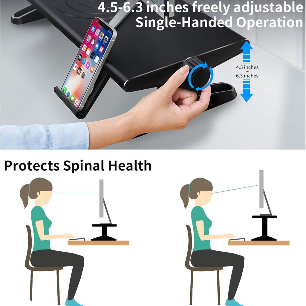 - Điều chỉnh linh hoạt: Dễ dàng thay đổi chiều cao 4.5 – 6.3 inch chỉ với một tay, phù hợp nhiều tư thế ngồi.