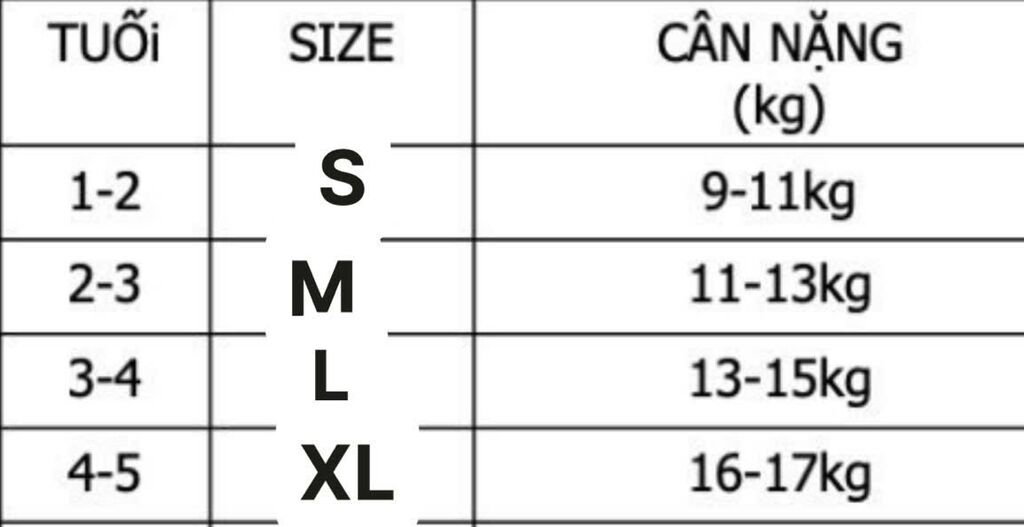 Size S-XL (bảng size như bên dưới)