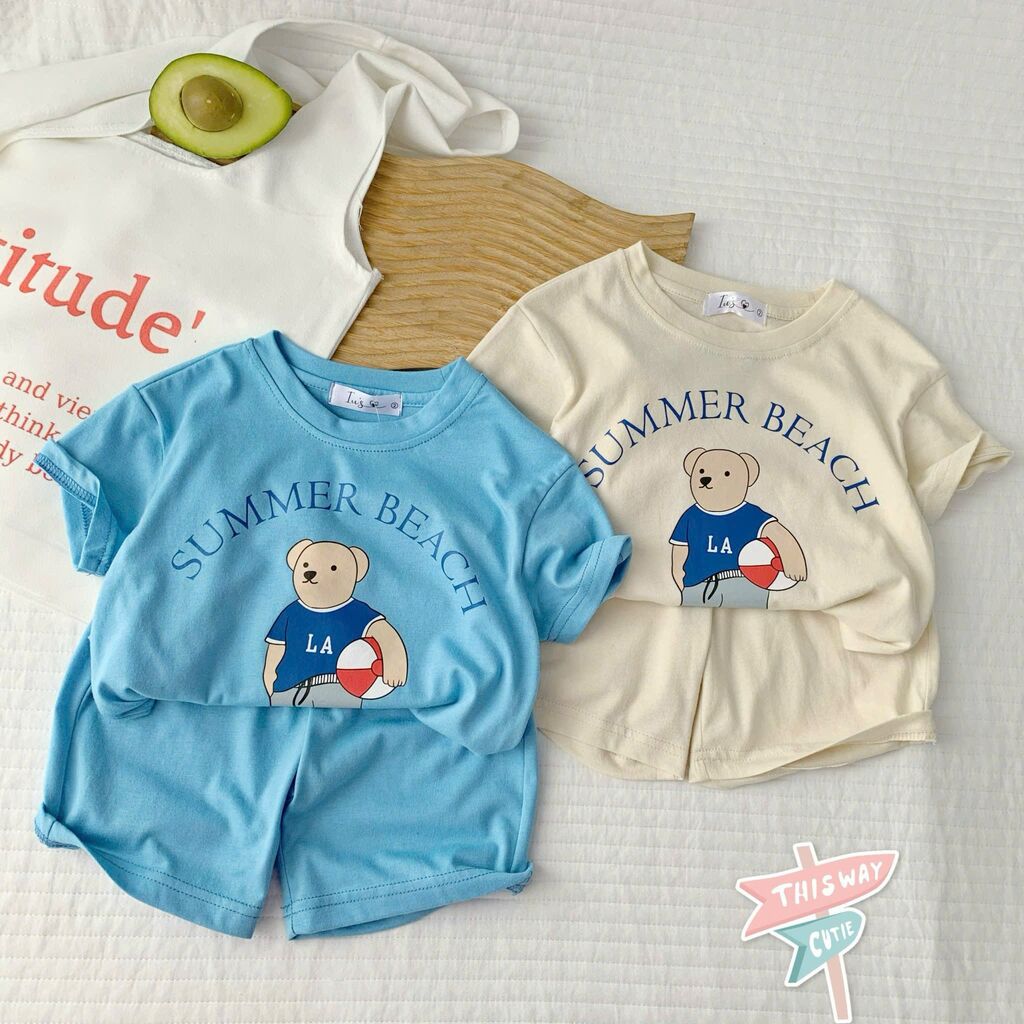 [Kho Mỹ Đình] 2-7 tuổi C6255 Bộ cộc cotton hình gấu 4 màu