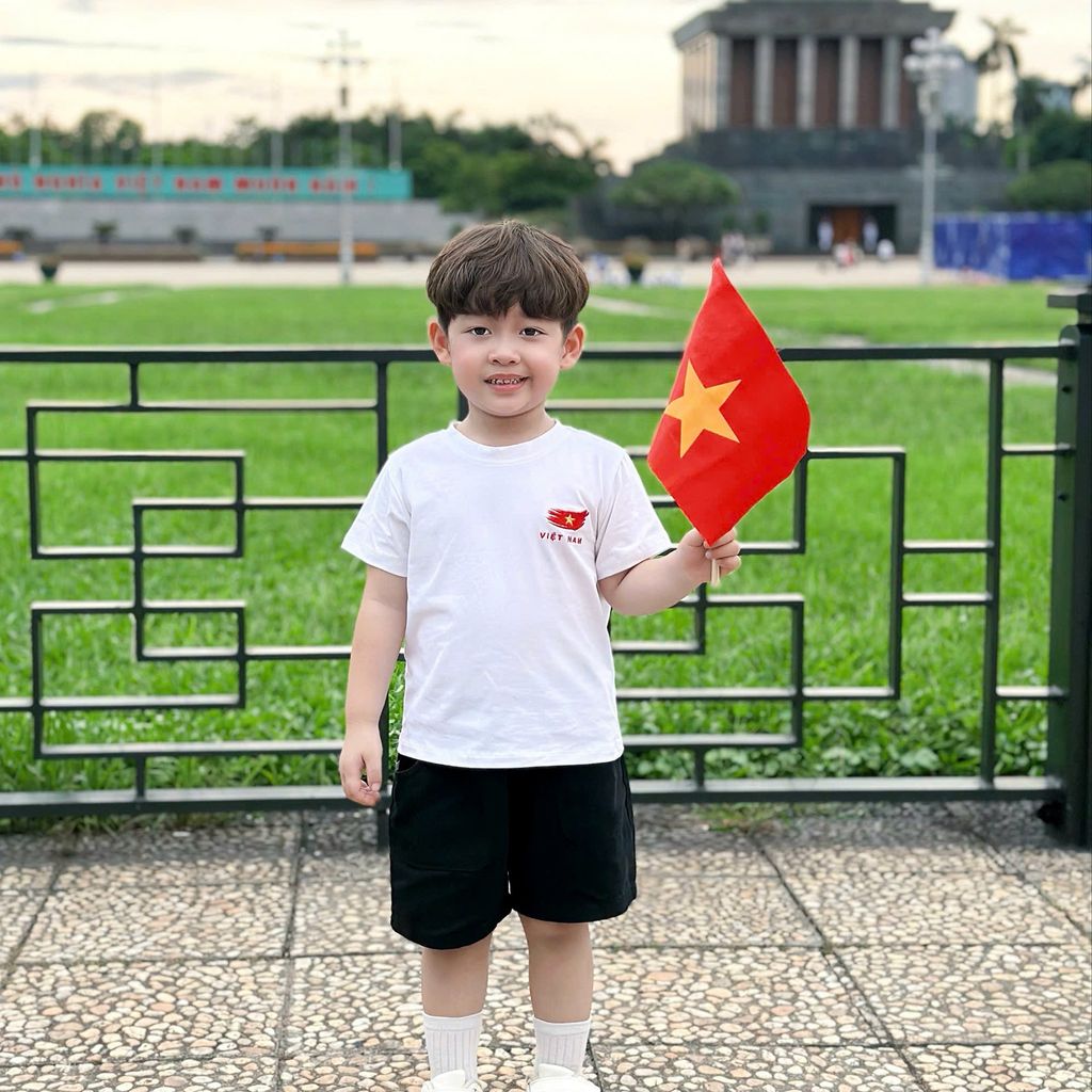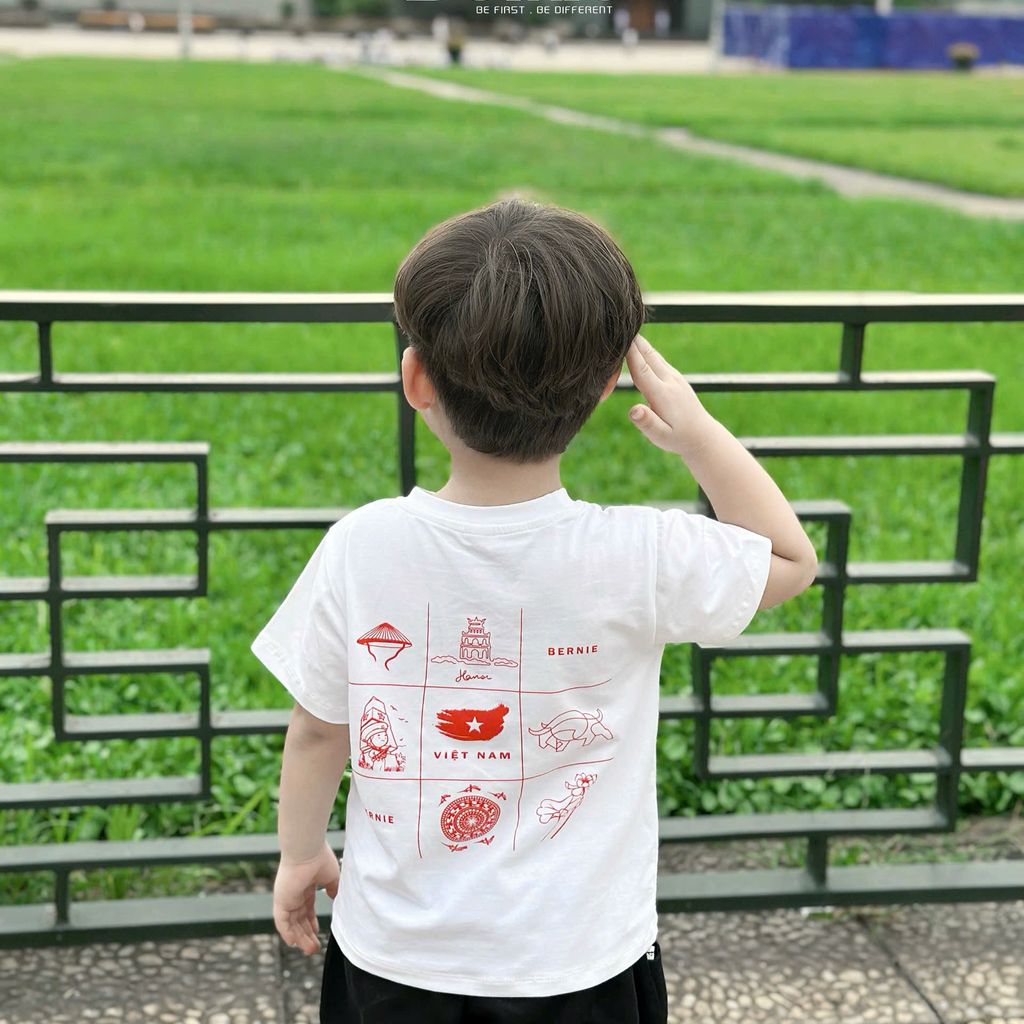 [Kho Mỹ Đình] 80-130(9-23kg) Áo phông cotton em bé cờm lá cờ