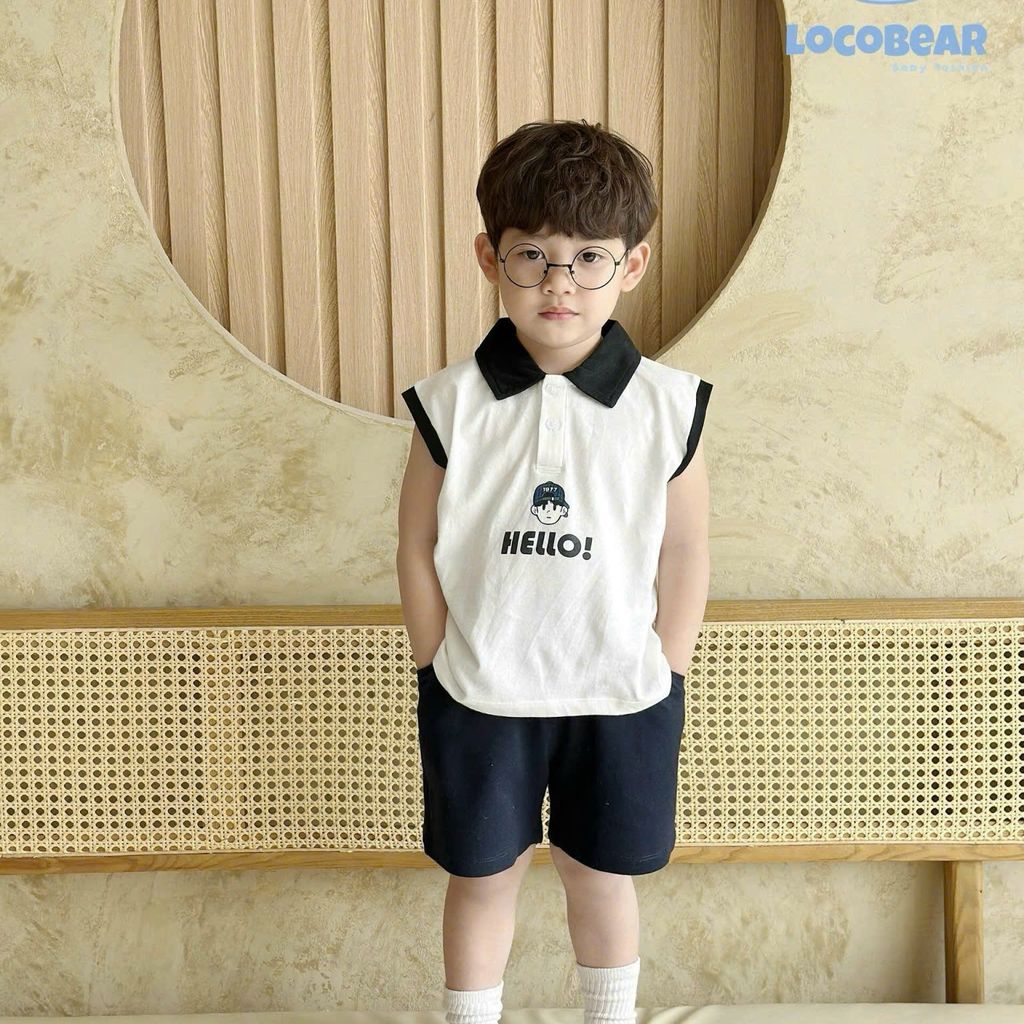 [Kho Mỹ Đình] 80-140(8-29kg) LCHB038 Bộ tanktop cổ polo cho bé trai