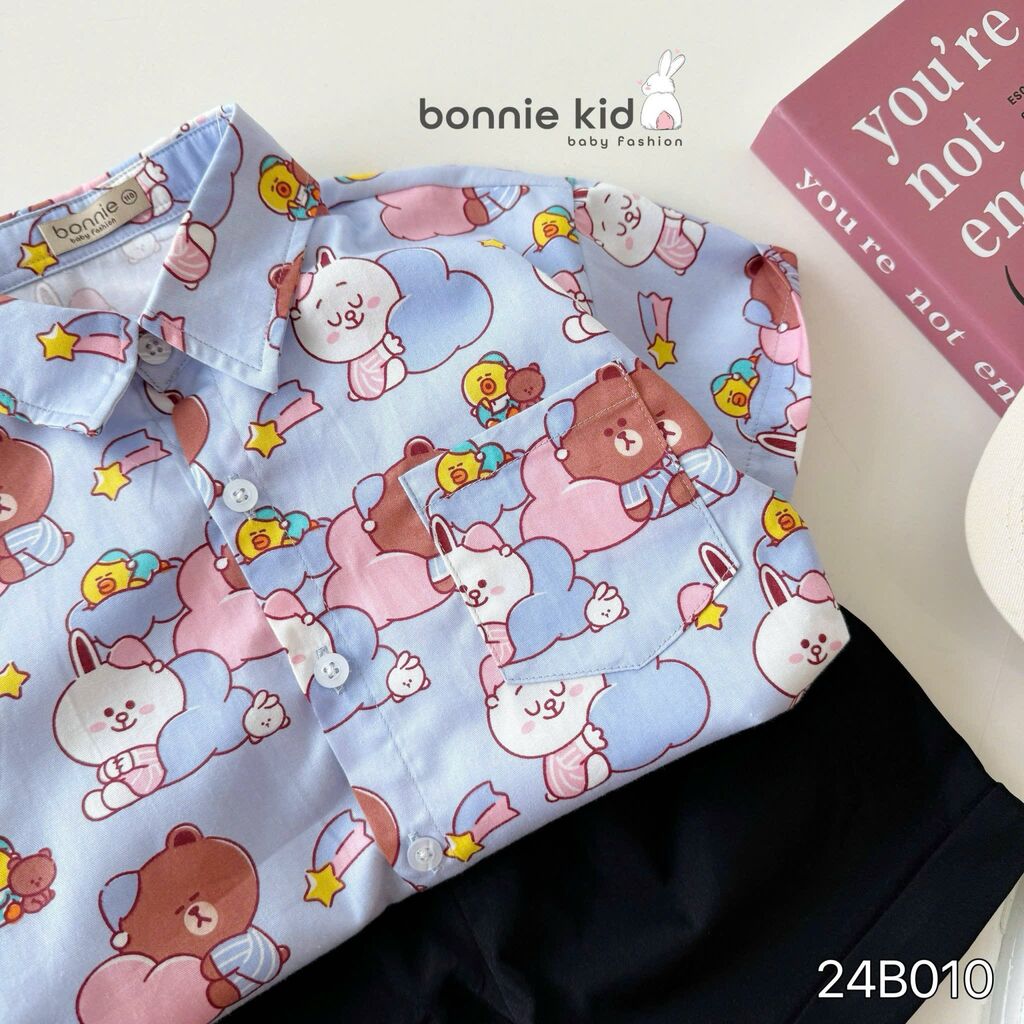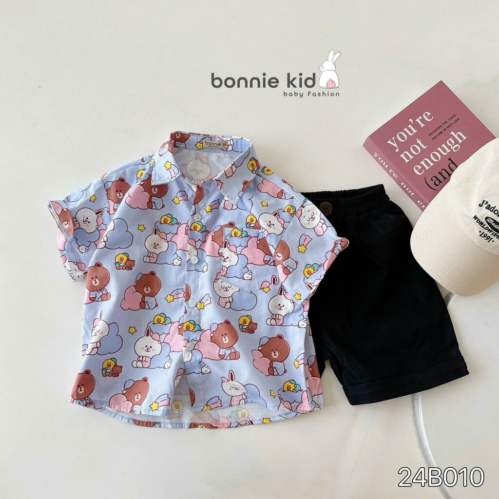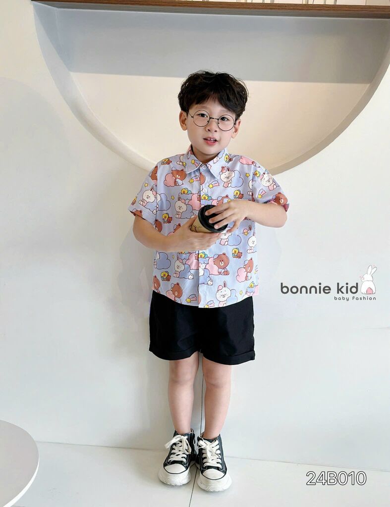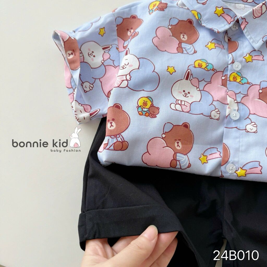 [Kho Mỹ Đình] 80-140(9-30kg) 24B010 Set sơ mi hoạ tiết gấu tím