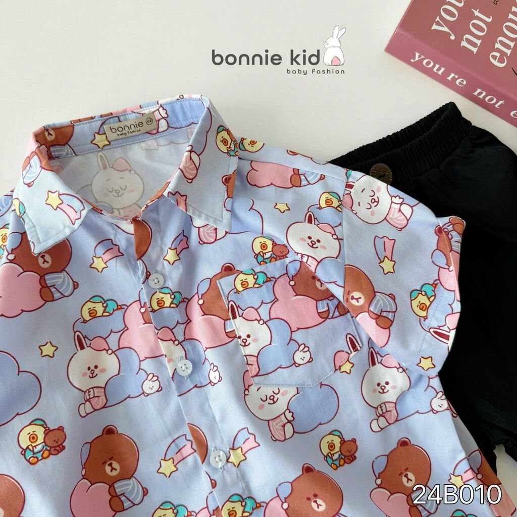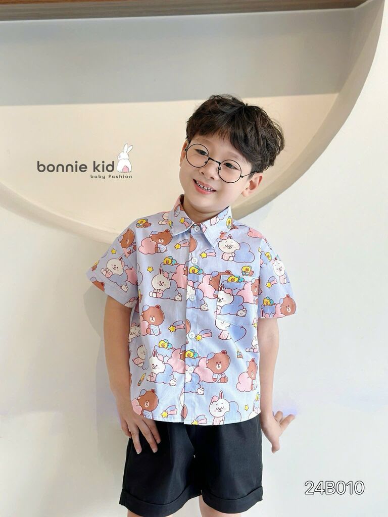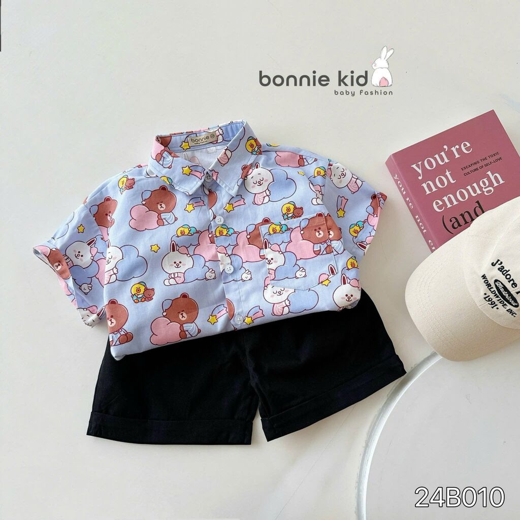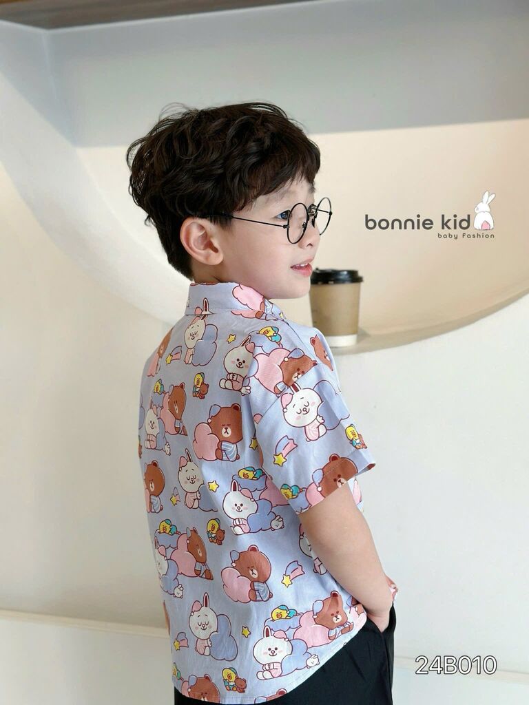 [Kho Mỹ Đình] 80-140(9-30kg) 24B010 Set sơ mi hoạ tiết gấu tím