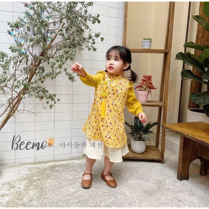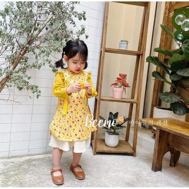 [Kho Mỹ Đình] D8830 .Set áo dài hoa nhí Beemo size 80-130cm