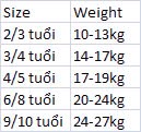 Tùy vào chiều cao cân nặng thực tế có thể lấy TĂNG SIZE cho bé mặc cho thoải mái
