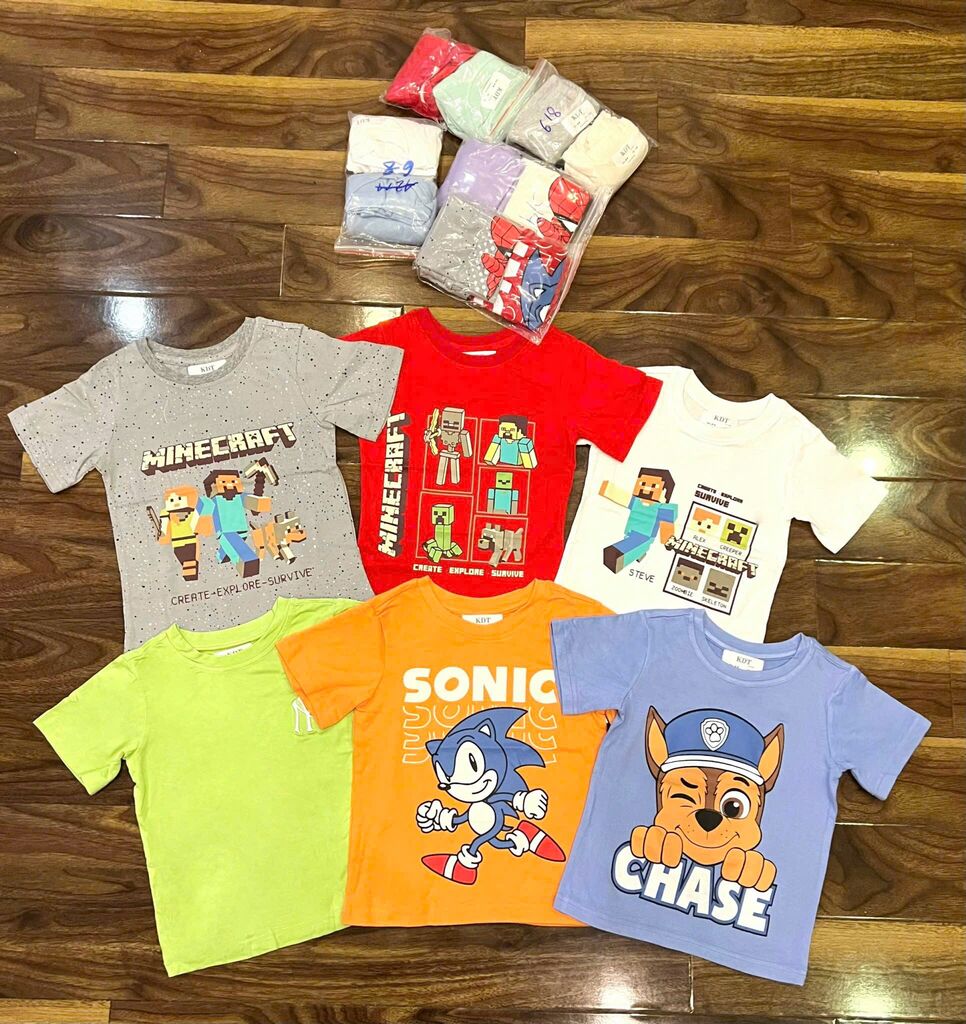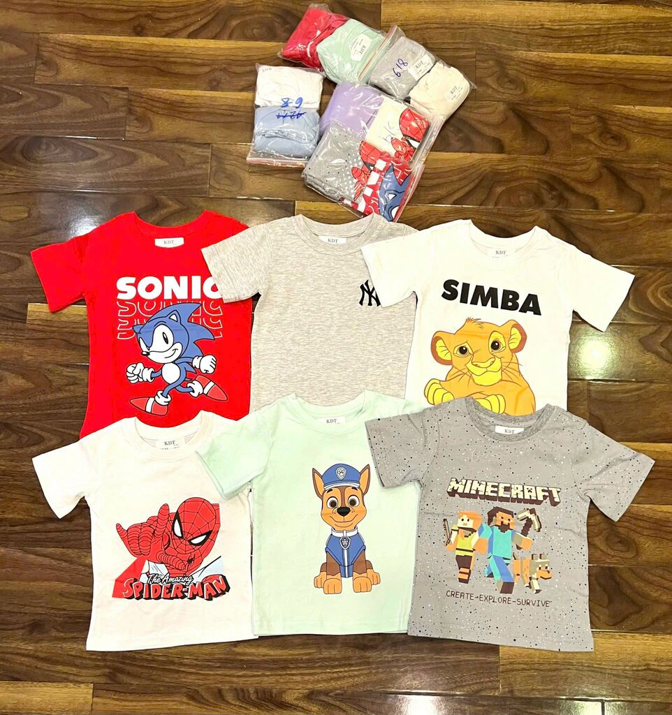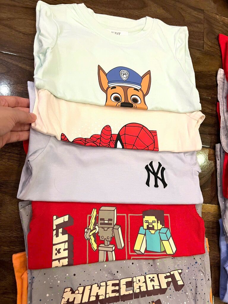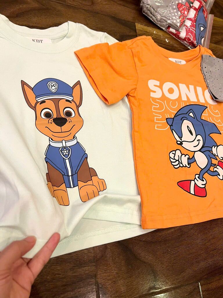 Chất cotton mềm mịn thấm hút mồ hôi, hình in sắc nét bé nào cũng mê.