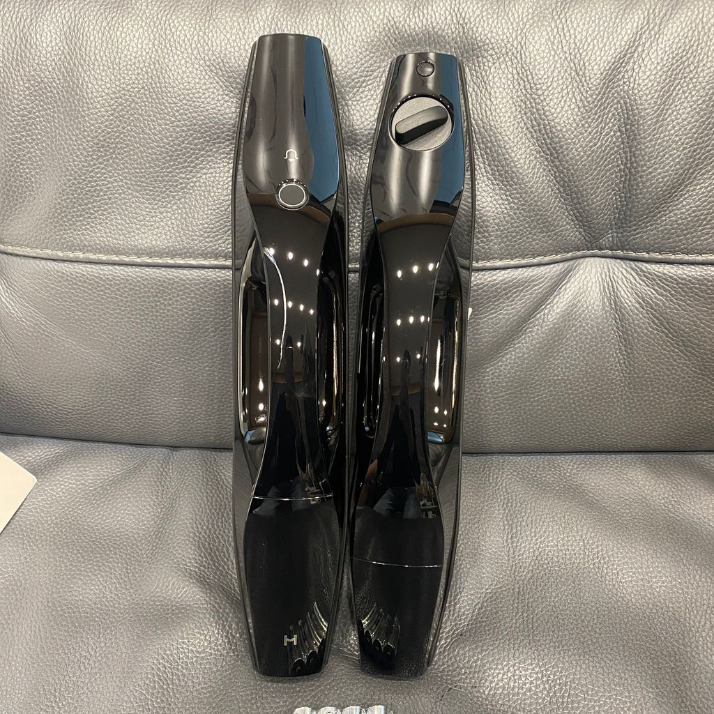 • Thiết kế sang trọng: Lớp hoàn thiện đen bóng (Glossy Black) tinh tế, tay cầm dạng đẩy - kéo (Push-Pull) tích hợp cảm biến vân tay ngay trên tay cầm, giúp bạn mở khóa chỉ bằng một chạm tự nhiên.