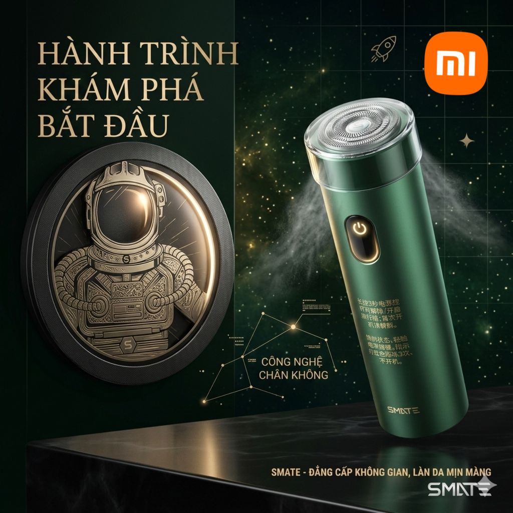 Không chỉ là một chiếc máy cạo râu, SMATE là một món phụ kiện công nghệ đầy tính nghệ thuật. Với tông màu xanh lục bảo (Emerald Green) sang trọng và họa tiết phi hành gia độc đáo trên vỏ hộp, sản phẩm mang đến thông điệp về sự tự do và tinh thần khám phá.