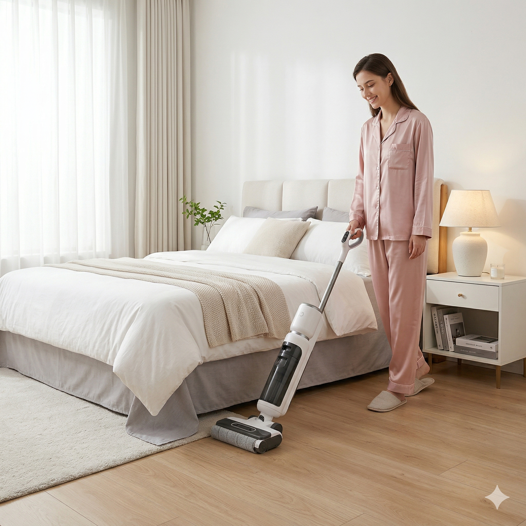 • Công nghệ "5 Giây Khô Sàn": Với lực hút cực mạnh và thiết kế con lăn thông minh, sàn nhà sẽ khô ráo hoàn toàn chỉ sau 5 giây, bảo vệ sàn gỗ và an toàn cho trẻ nhỏ.