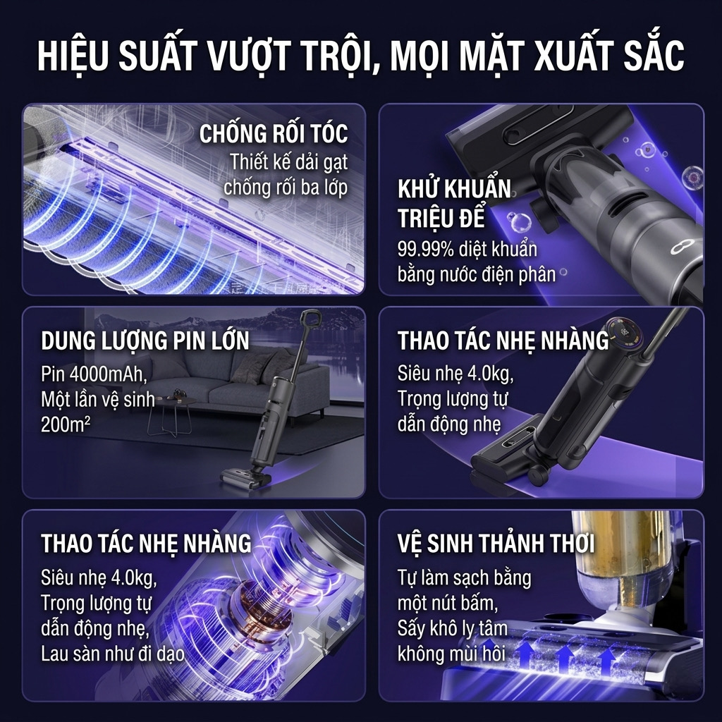 Loại sản phẩm: Máy lau sàn hút bụi thông minh không dây