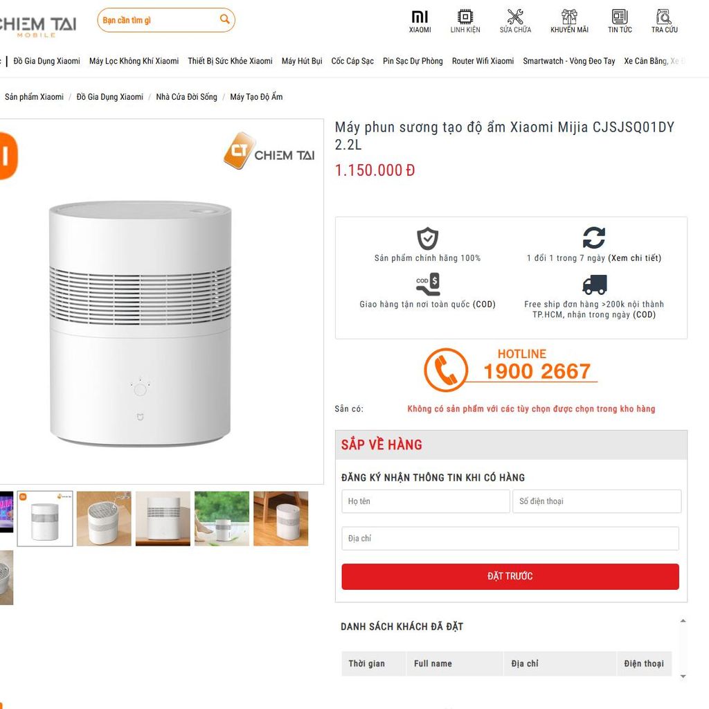Máy phun sương tạo độ ẩm thông minh Xiaomi Mijia CJSJSQ01DY 2.2L (bản Q.Tế kết nối App Xiaomi Home )