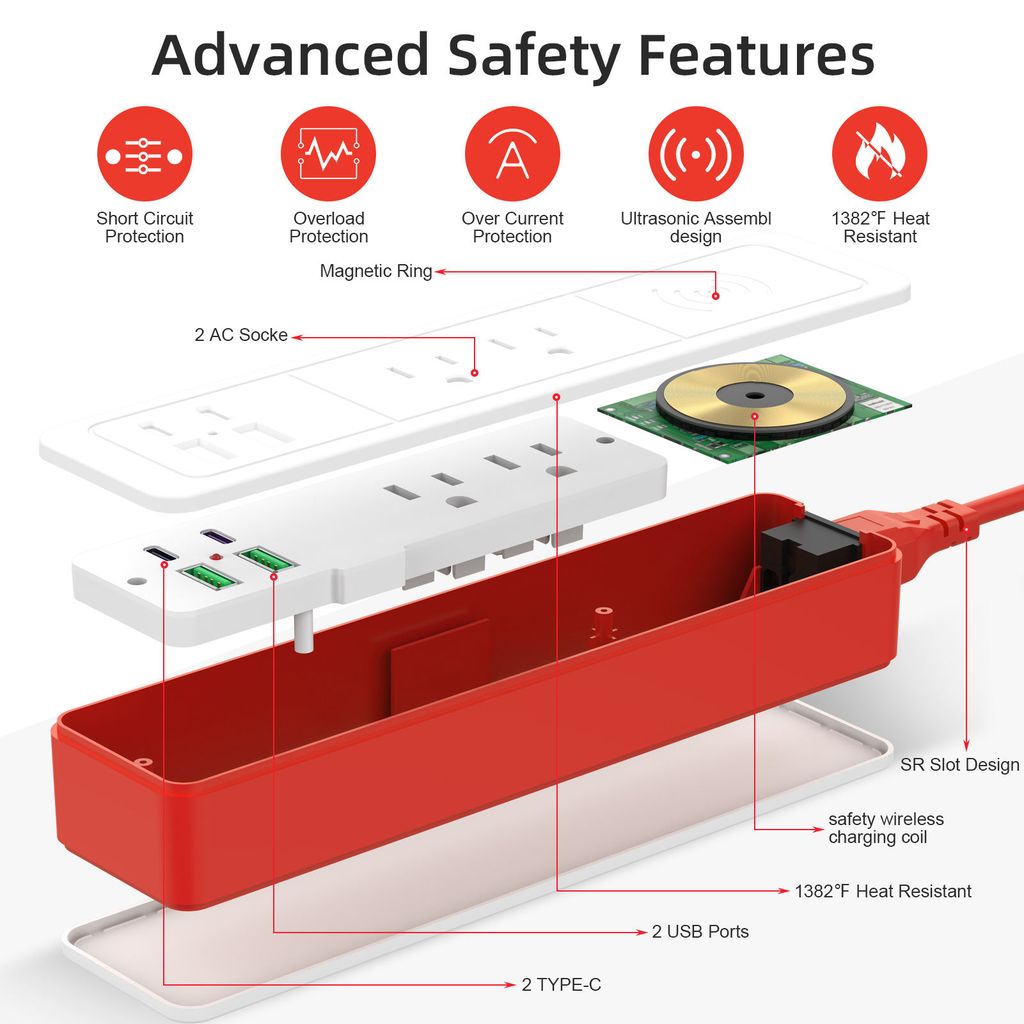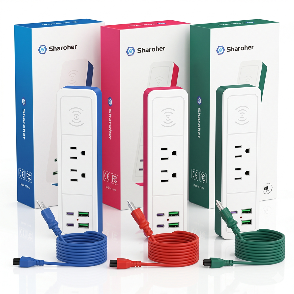 Ổ điện đa năng Sharoher ( Amazon Mỹ ) 2 cổng AC 220v + 2 cổng C sạc 20W+ 2 USB A + sạc ko dây