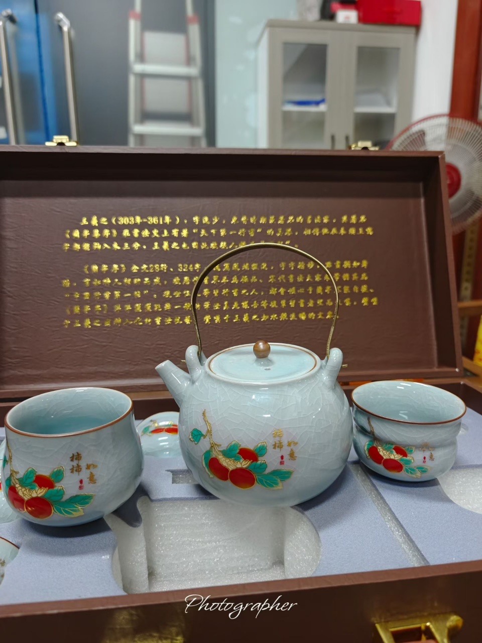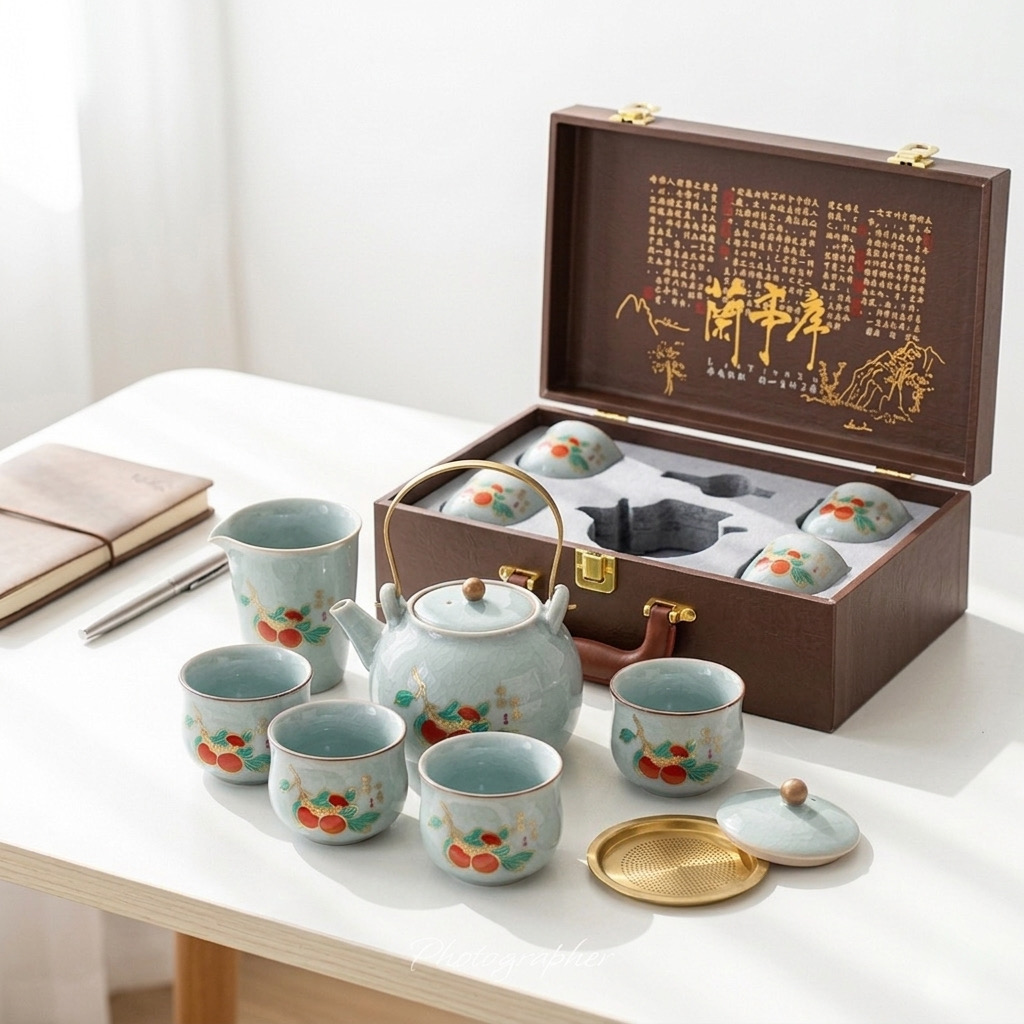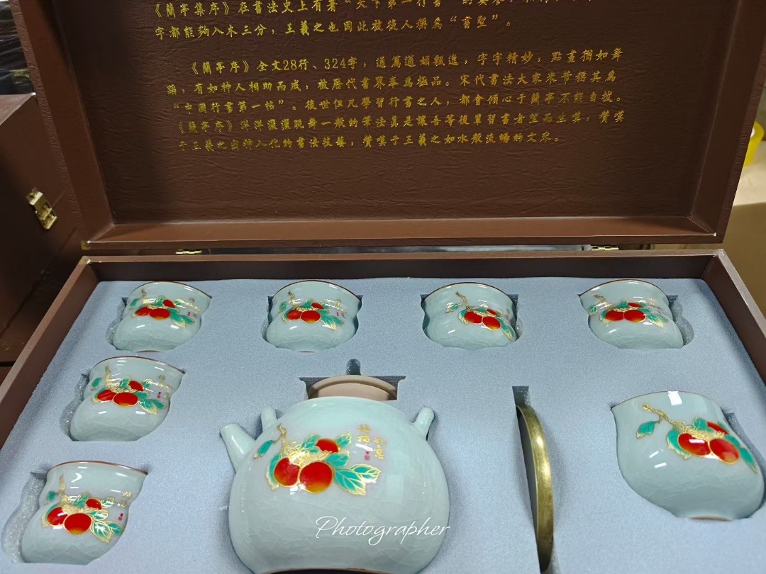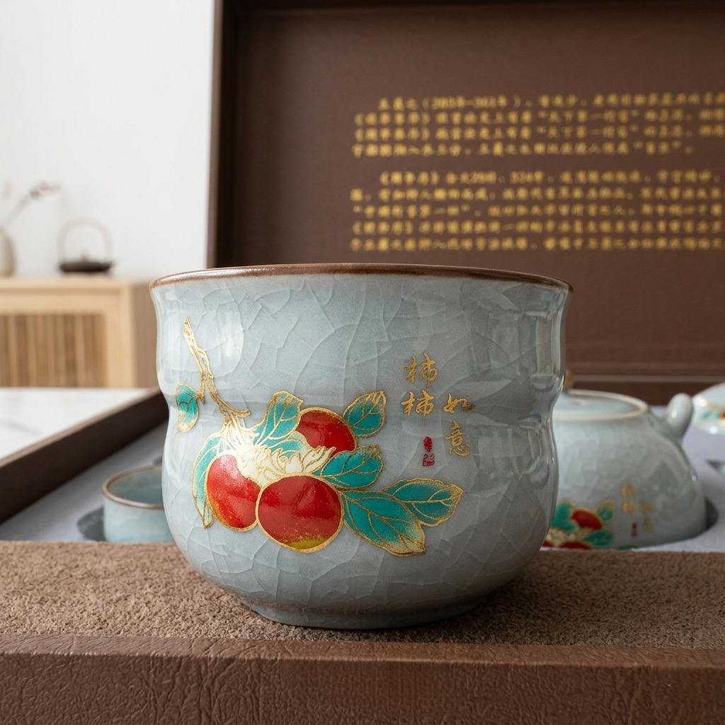 Bộ Ấm Trà Sứ Men Ngọc Băng Rạn - Họa Tiết Quả Hồng "Sự Sự Như Ý" - Kèm Hộp Quà Sang Trọng Lan Đình Tự là một bộ trà rất đẹp và mang đậm tính nghệ thuật. Với họa tiết "Sự Sự Như Ý" (quả hồng) và cảm hứng từ tác phẩm "Lan Đình Tập Tự" của Vương Hy Chi.