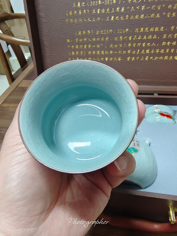 -64%{Order giao 30/4} Bộ ấm chén trà sứ men rạn băng diệp "Thiên Lý Giang Sơn", kèm hộp quà