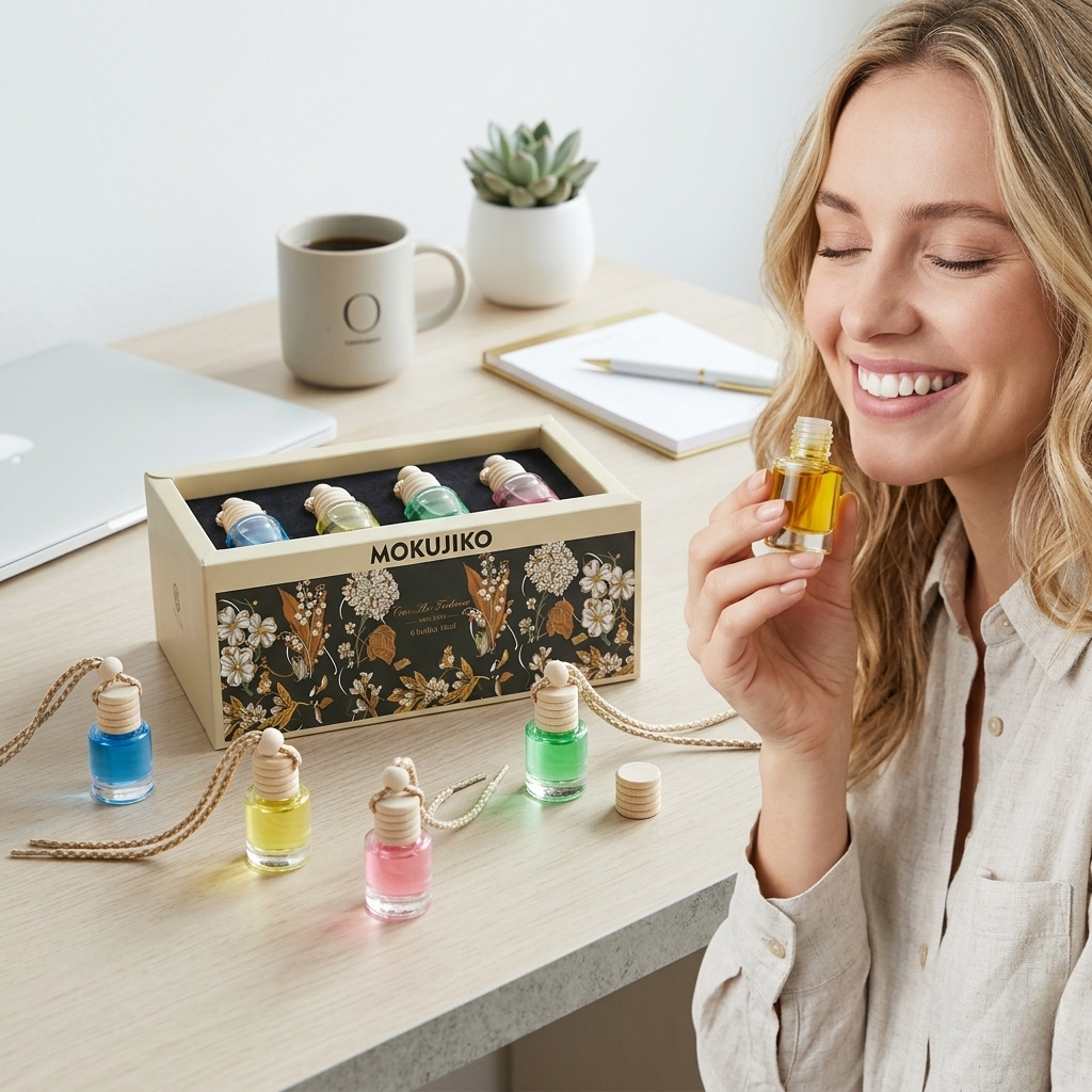 Bạn muốn mỗi chuyến đi đều là một trải nghiệm thư giãn và đẳng cấp? Bộ sưu tập tinh dầu nước hoa xe hơi MOKUJIKO - 6 mùi hương tinh tế sẽ biến không gian xe bạn trở thành thiên đường mùi hương.