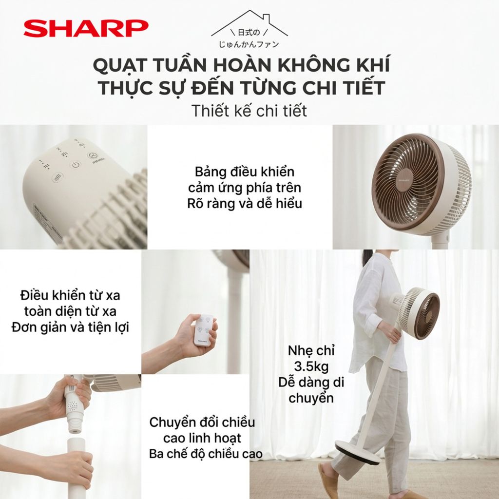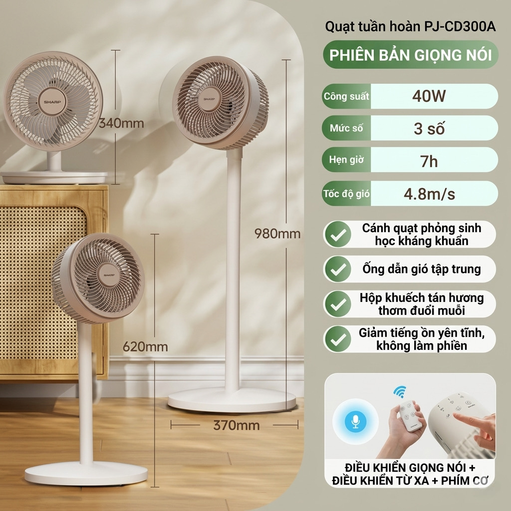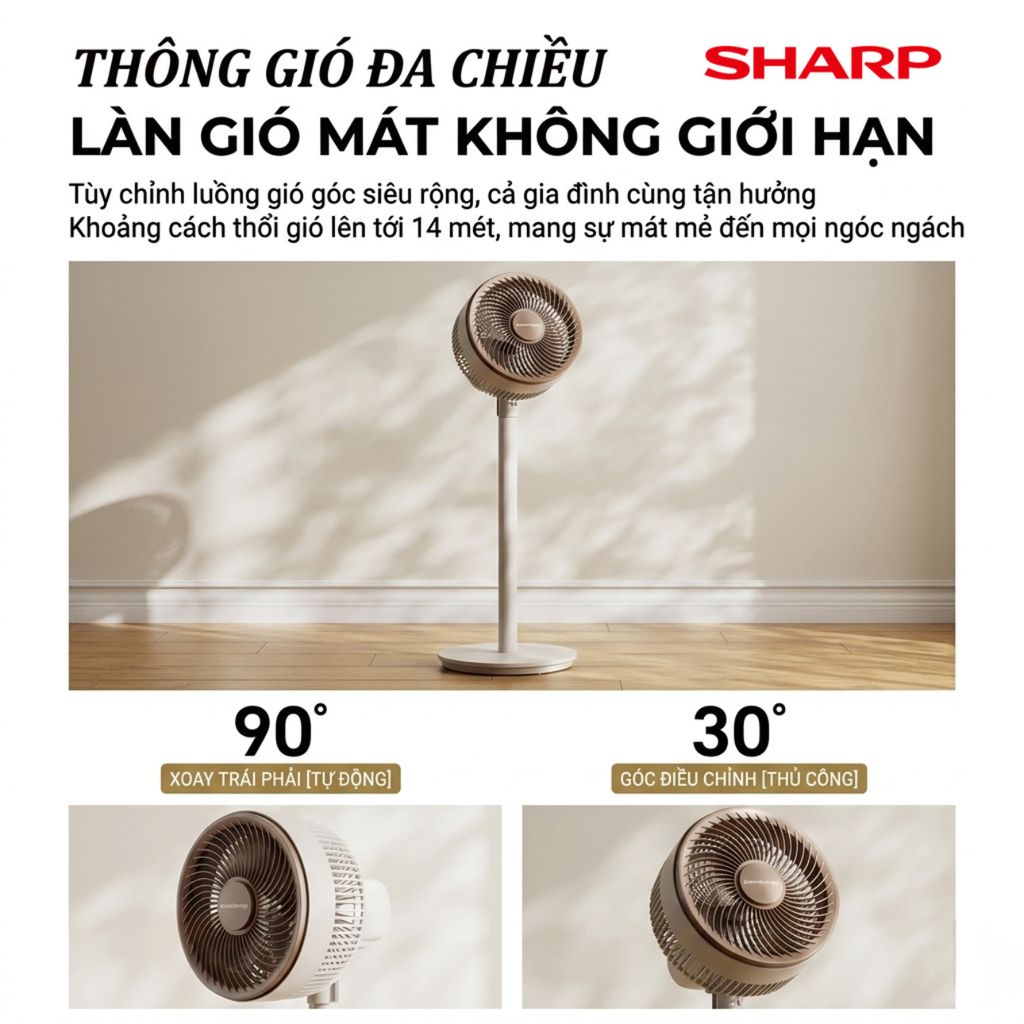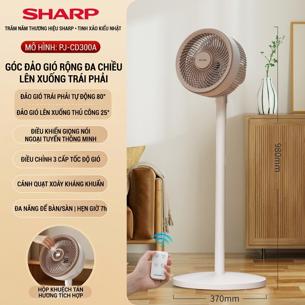{Order giao 30/4} Quạt cây đối lưu đa năng SHARP PJ-CD300A, công suất 40W, tăng giảm chiều cao