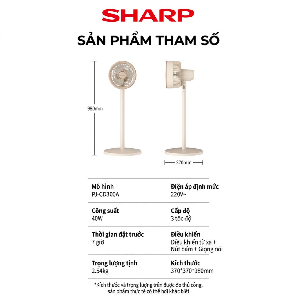 THÔNG SỐ KỸ THUẬT QUẠT SHARP PJ-CD300A