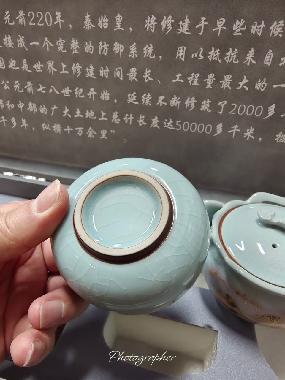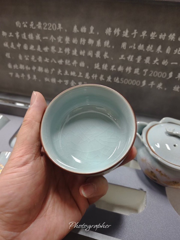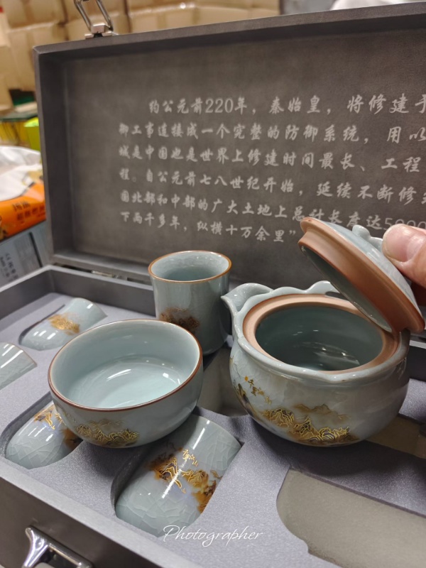 -64%{Order giao 30/4} Bộ ấm chén trà sứ men rạn băng diệp "Thiên Lý Giang Sơn", kèm hộp quà