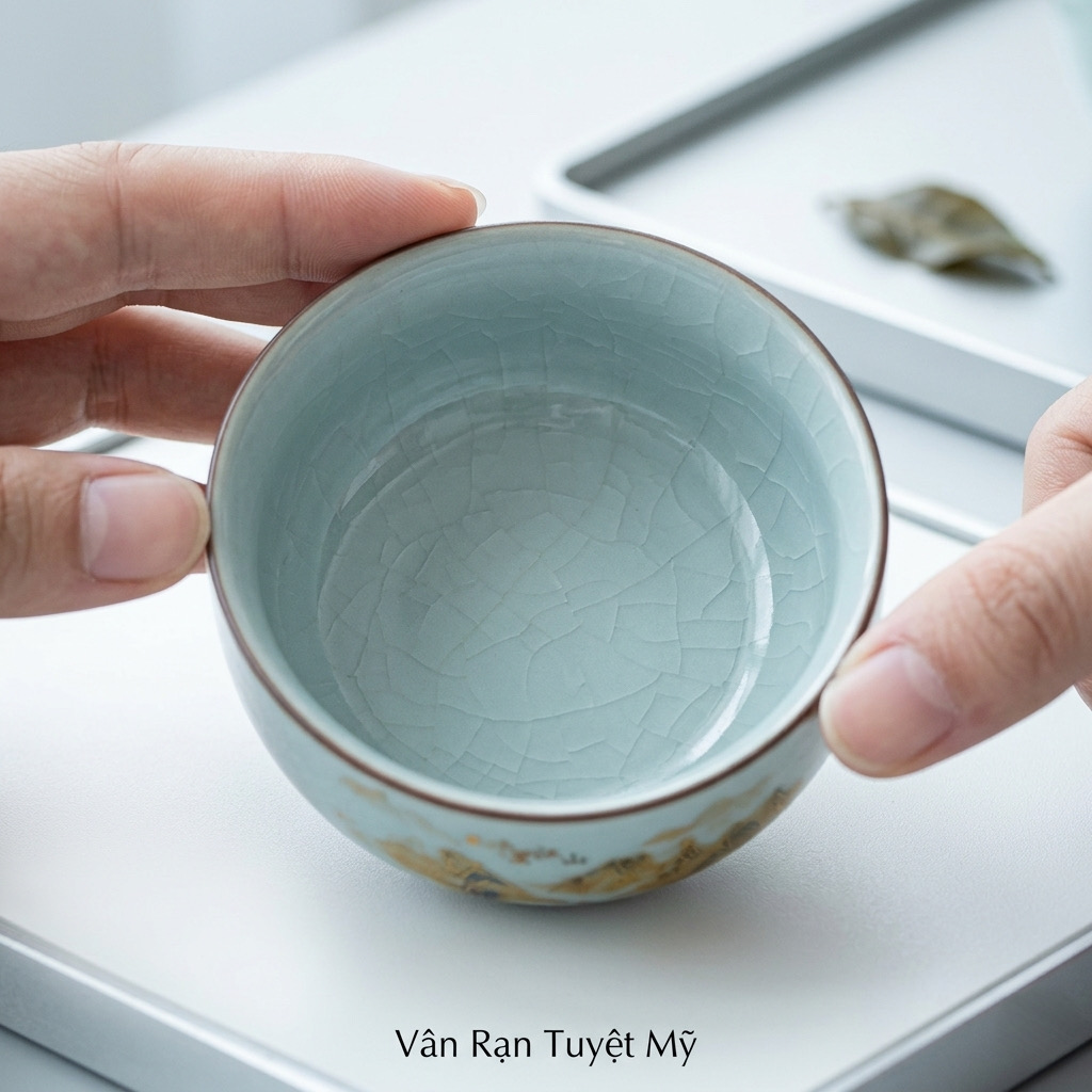• Chất liệu: Gốm sứ men rạn cao cấp (phong cách lò Ge nổi tiếng). Lớp men sáng bóng, các đường rạn tự nhiên, tinh xảo.