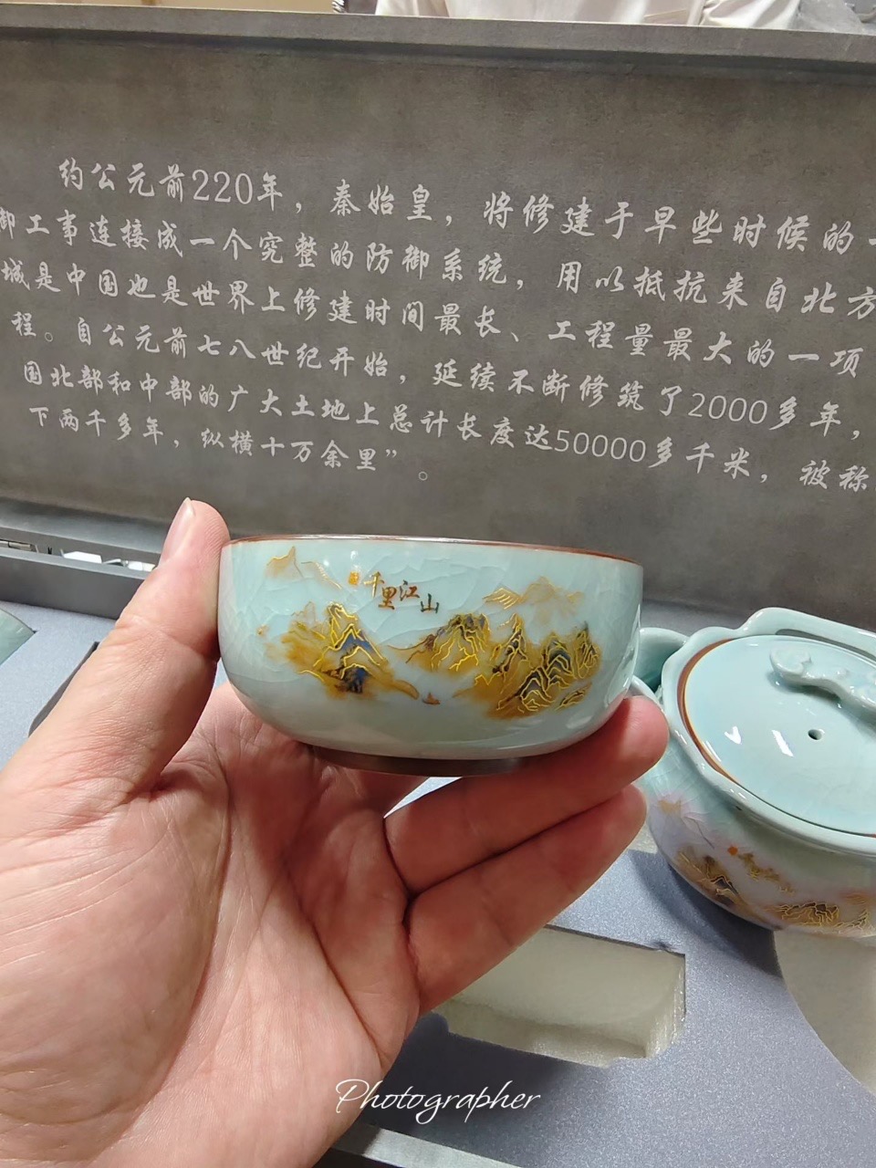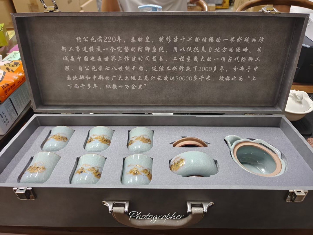 • Họa tiết: Hình ảnh "Giang Sơn" và "Vạn Lý Trường Thành" được khắc họa tỉ mỉ, viền chỉ vàng sang trọng, tượng trưng cho sự thành công và bền vững.