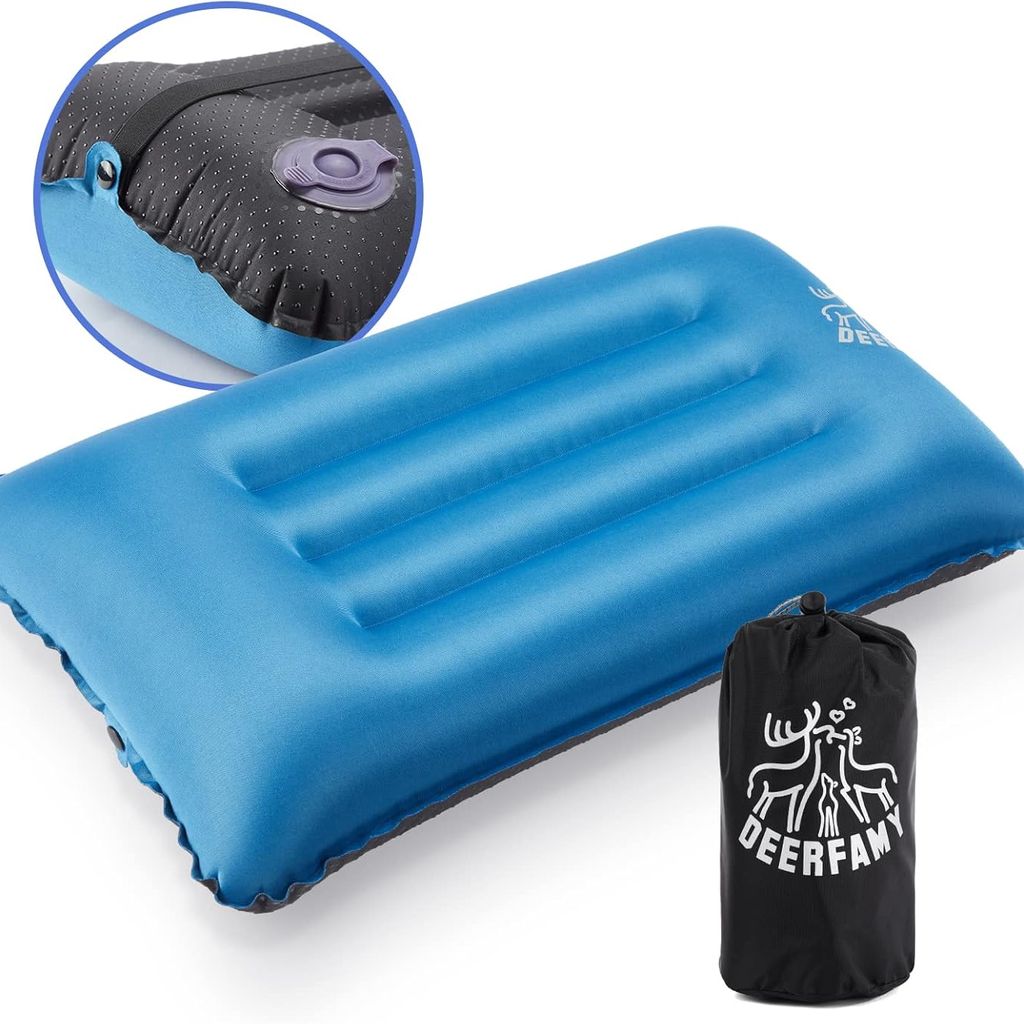 Gối hơi du lịch tự bơm (Inflatable Camping/Travel Pillow) của thương hiệu DEERFAMY.