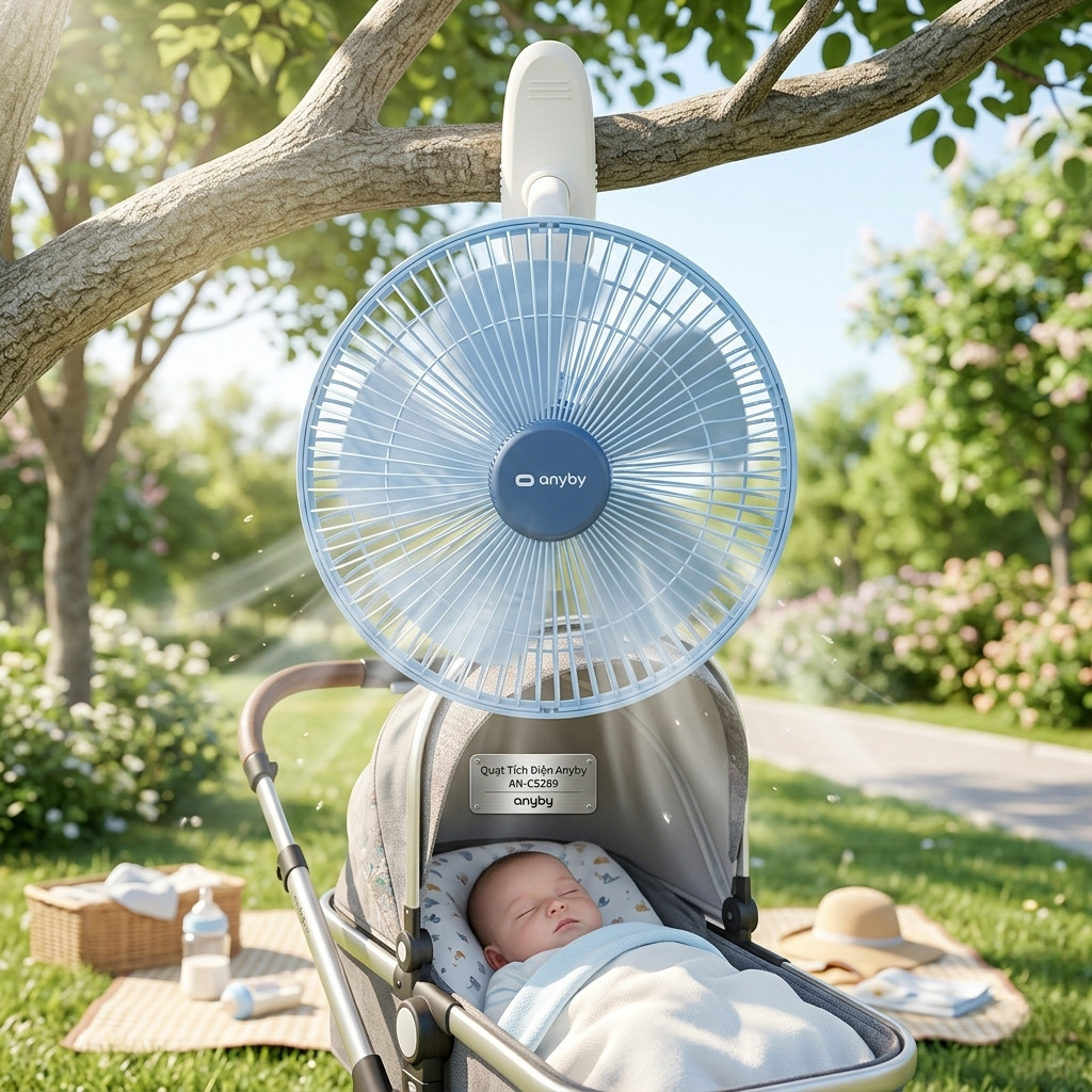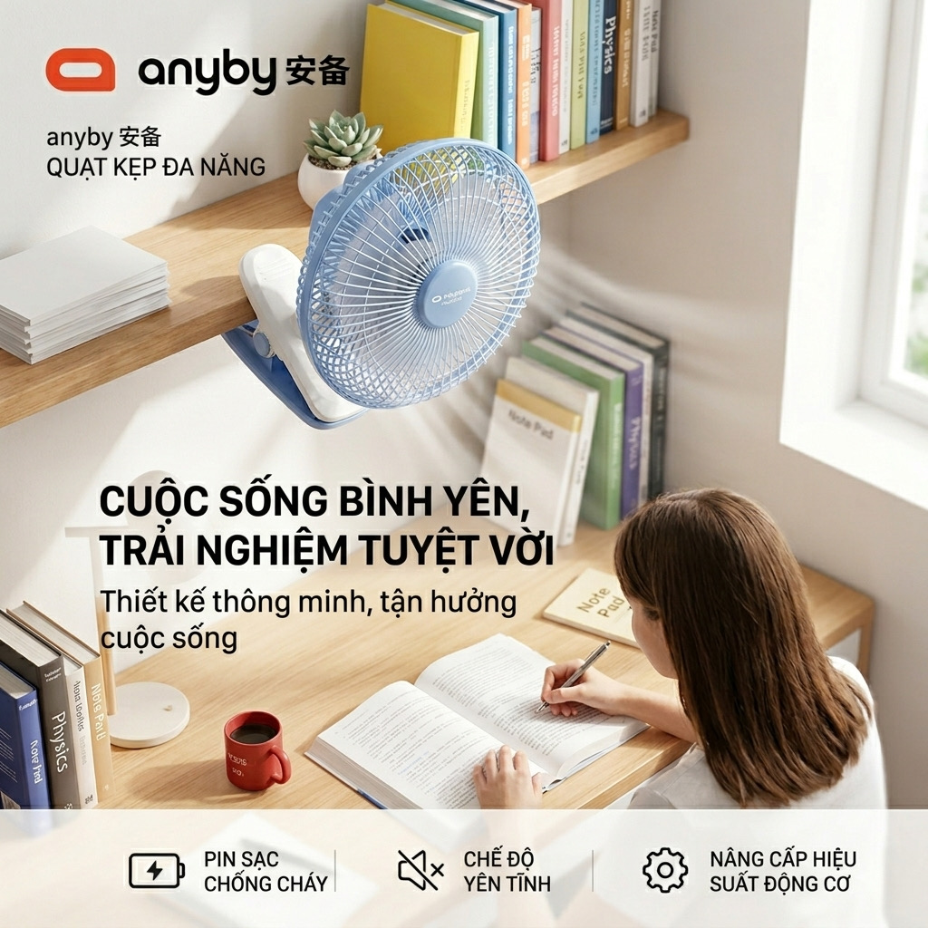 Quạt bàn tích điện Anyby L2909 , pin 4500mAh, chạy được bằng Pin dự phòng , thiết kế có thể kẹp
