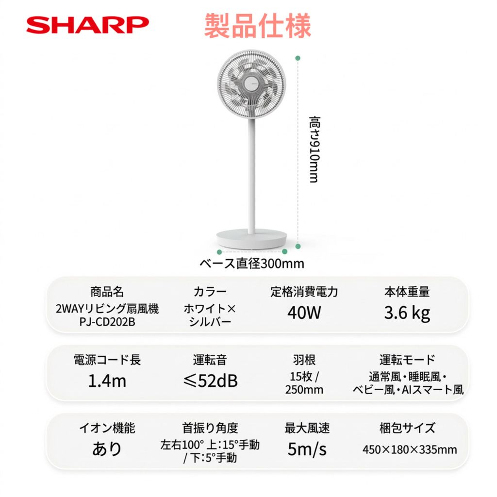 Quạt cây AI thông minh SHARP PJ‑CD202B, 15 cánh, công suất 40W, Remote, tạo ion