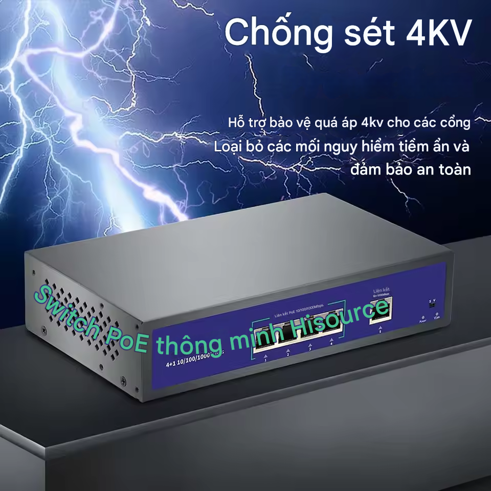 Switch POE Hisource Full Gigabit AI 4 Cổng, 8 Cổng
