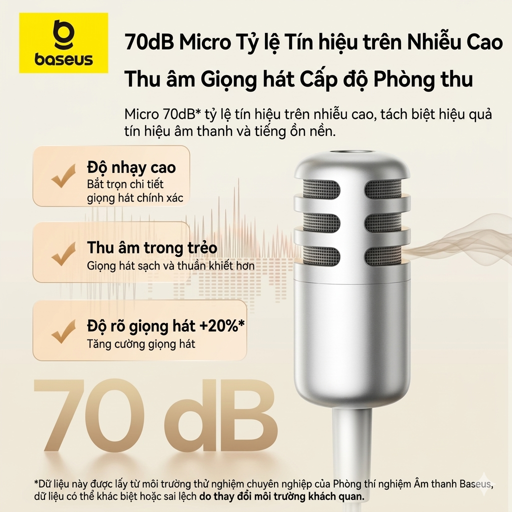 • Micro High-Fidelity 70dB: Khả năng thu âm cực nhạy, lọc bỏ tạp âm nền hiệu quả, giúp giọng nói của bạn nổi bật và sắc nét hơn 20% so với tai nghe thông thường.