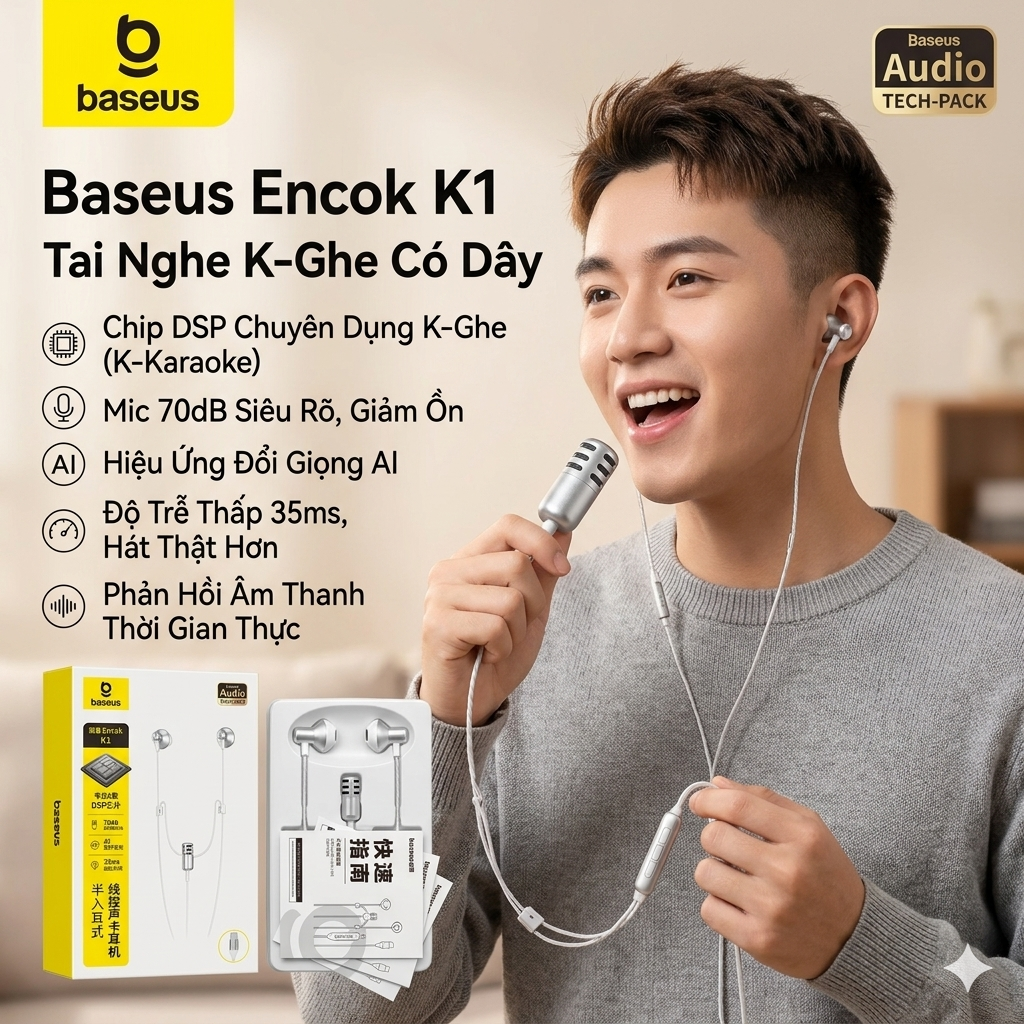 Bạn đam mê hát Karaoke trên điện thoại? Bạn là một Streamer hay đơn giản muốn có những bản thu âm chuẩn studio ngay tại nhà? Baseus Encok K1 chính là "vũ khí" bí mật dành riêng cho bạn!
