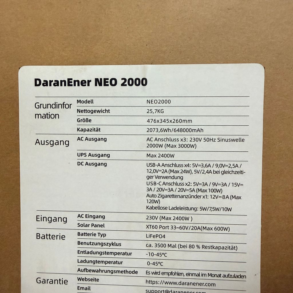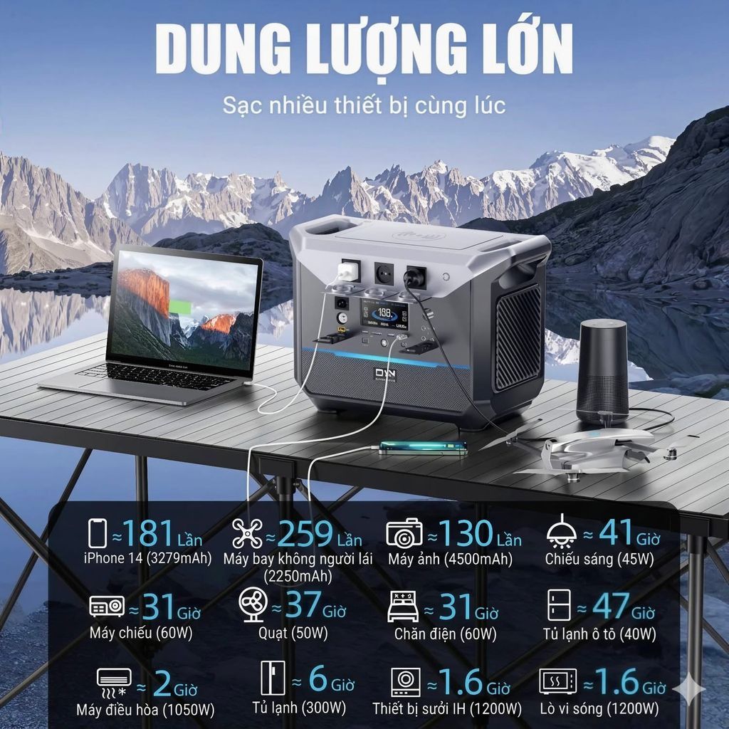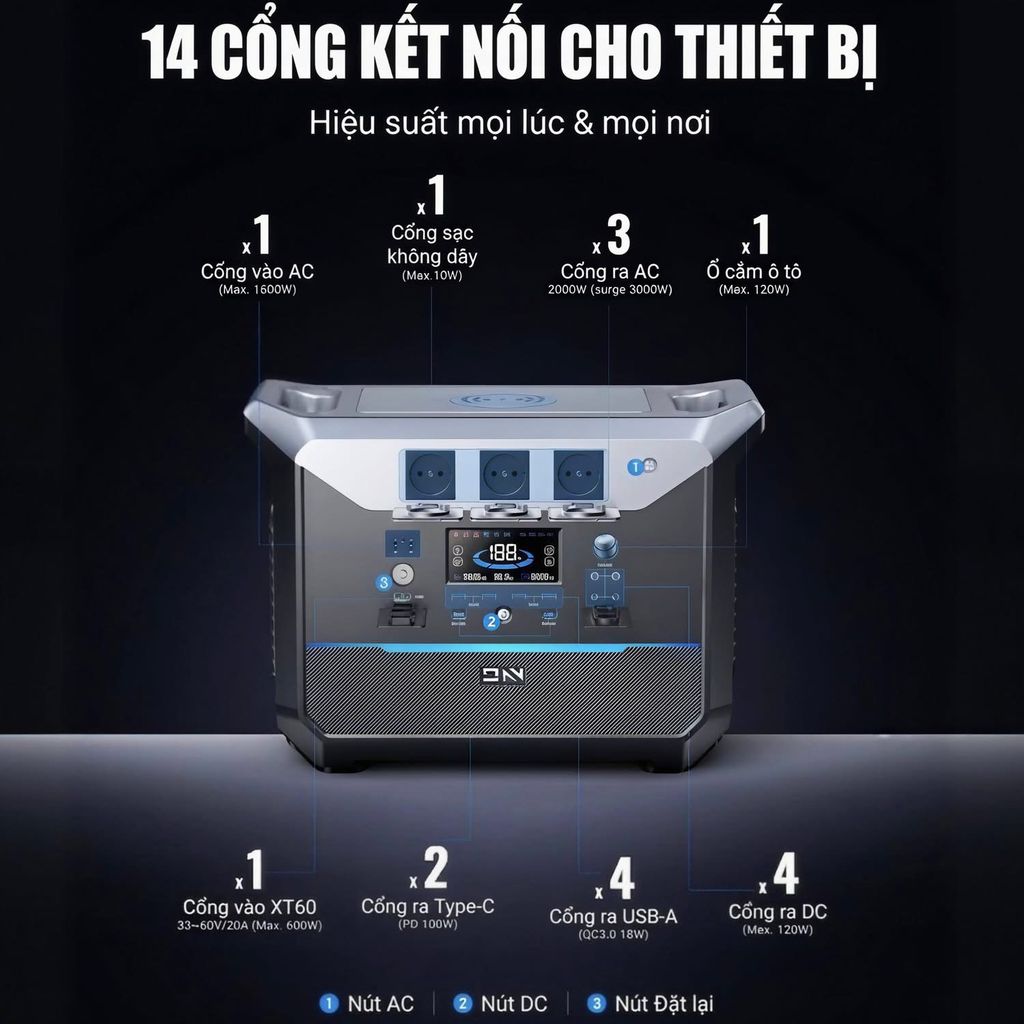 ⚡ Trạm điện di động DaranEner NEO 2000 – Dung lượng khủng 2073Wh, công suất 2000W